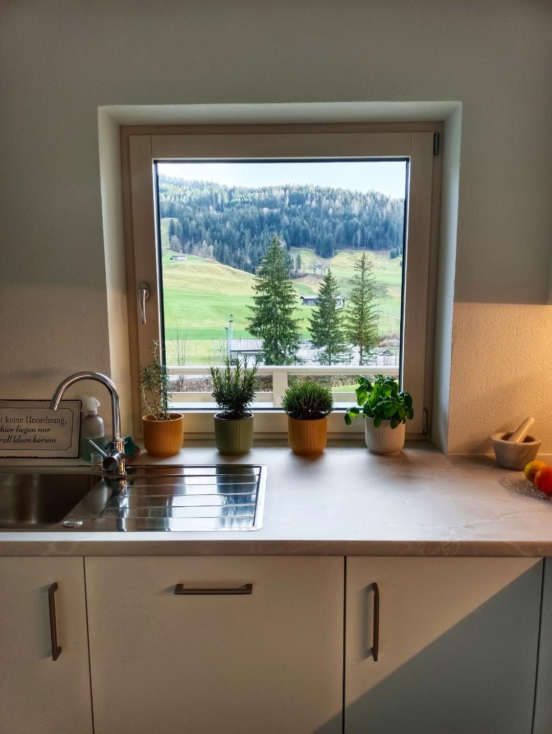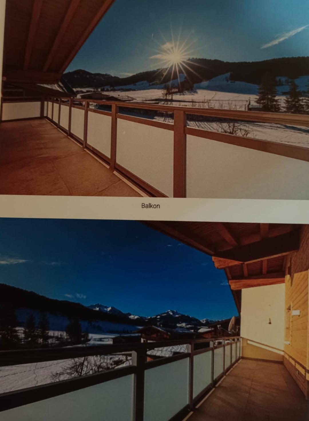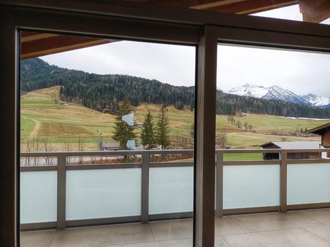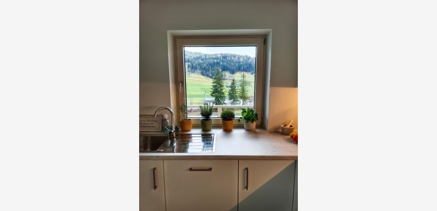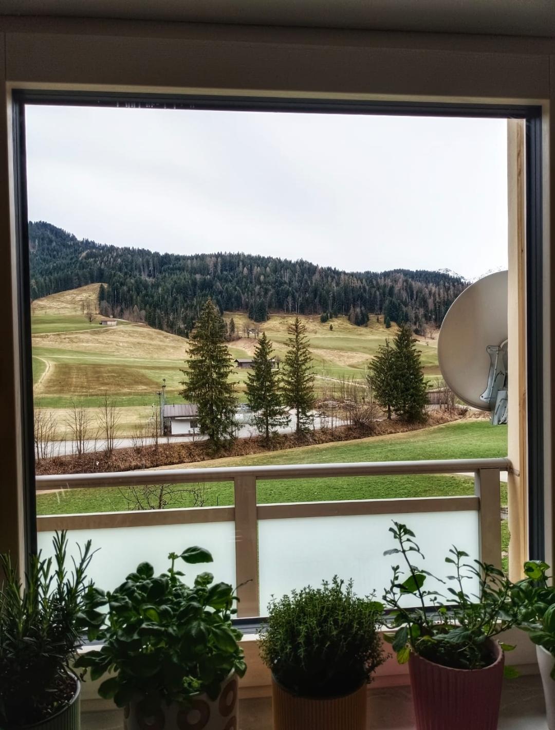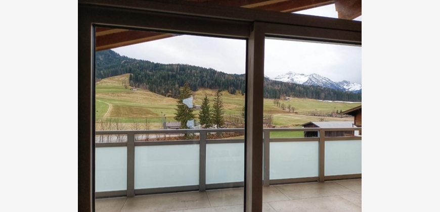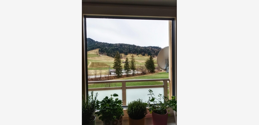Sehr großer, uneinsichtiger Balkon mit Fernsicht über Wiesen und Richtung Berge