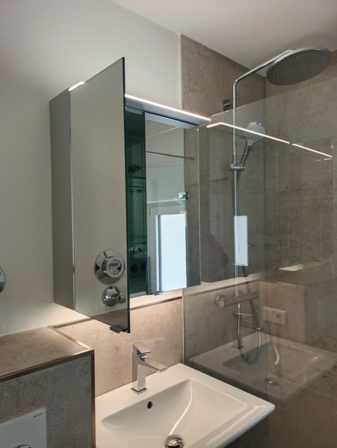 Elegantes Badezimmer mit hochwertiger Ausstattung (u.a. Villeroy & Boch) und Regendusche