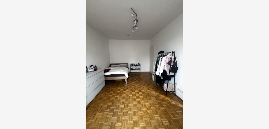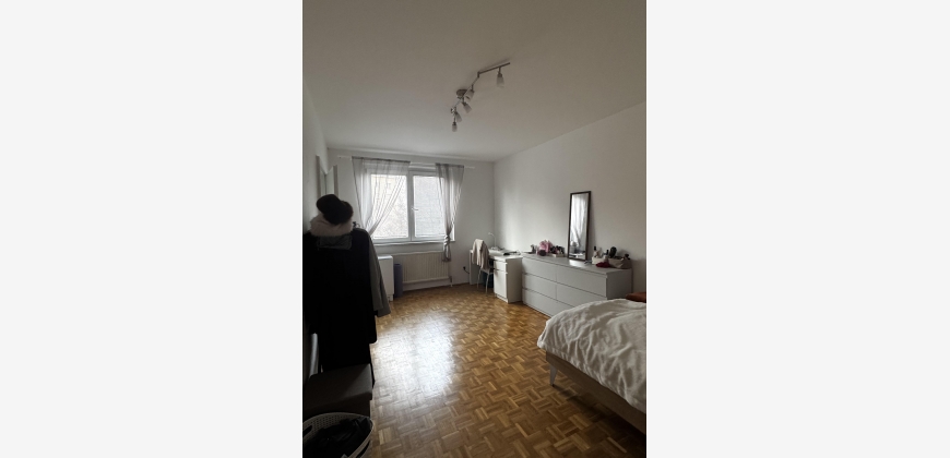 Das Zimmer ist 20m2 und lichtdurchflutet, die zwei grossen Fenster sind zur südlichen Seite des Gebäudes ausgerichtet.