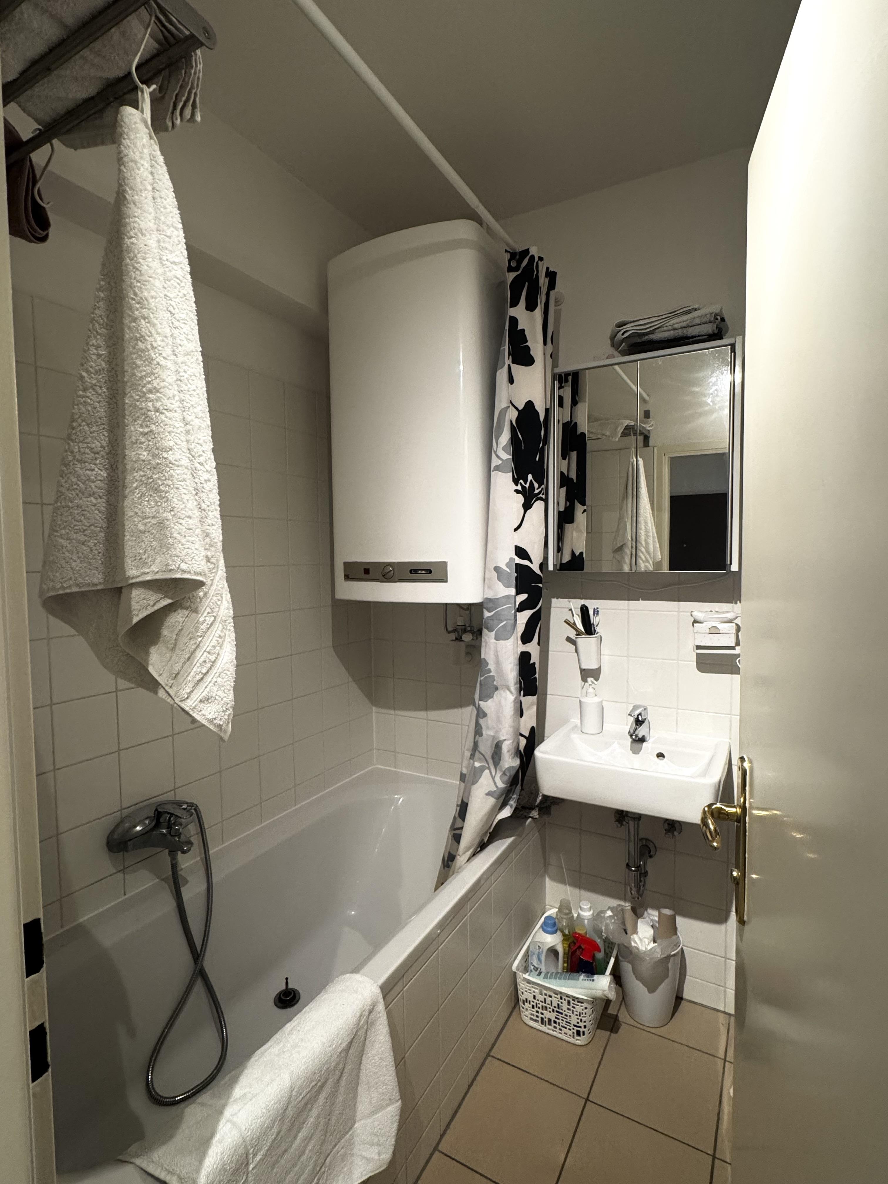Das Bad verfügt über eine Waschmaschine.