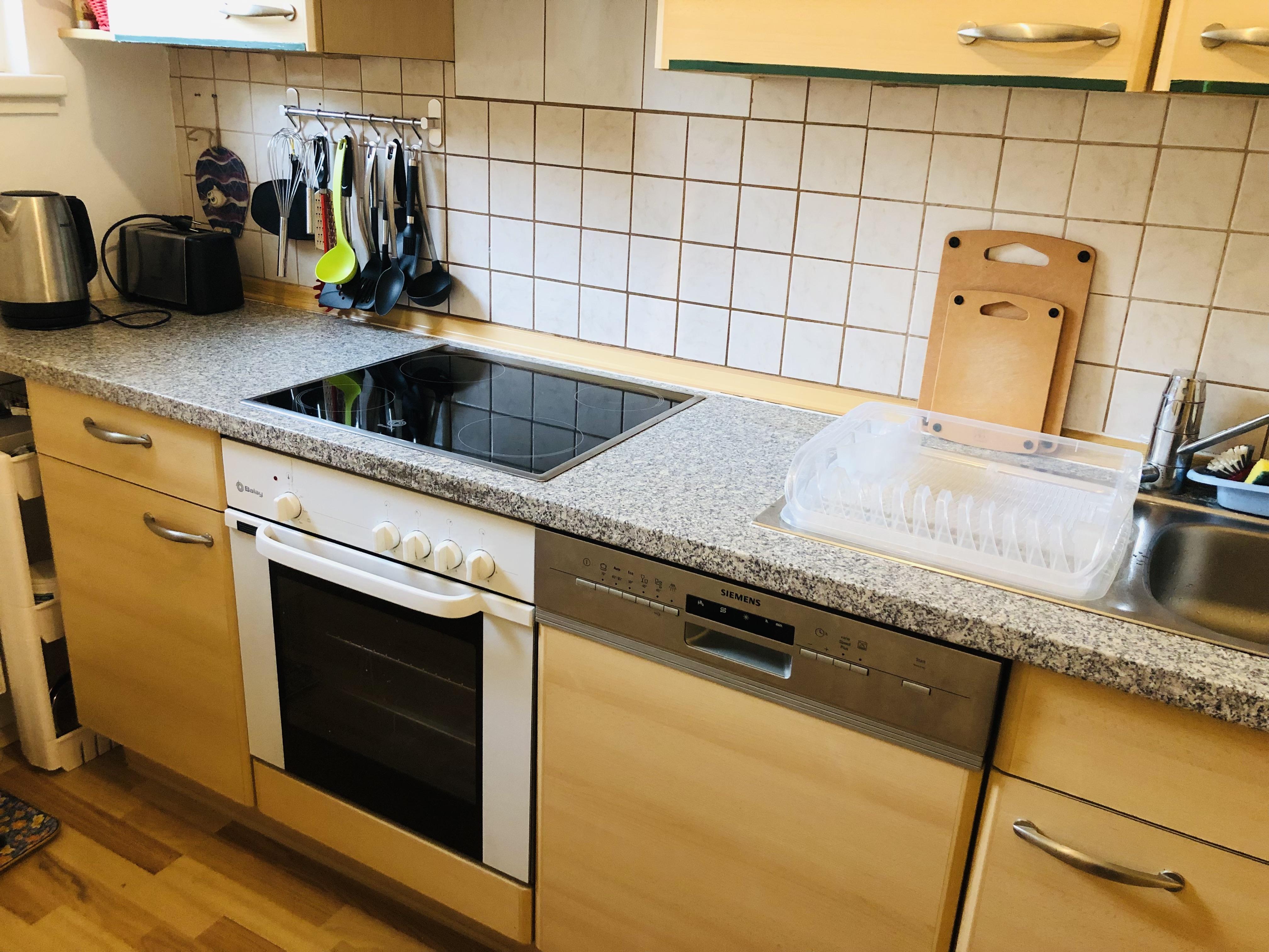 - Küche (inkl. Kühlschrank, Geschirrspüler, E-Herd, Backofen)
