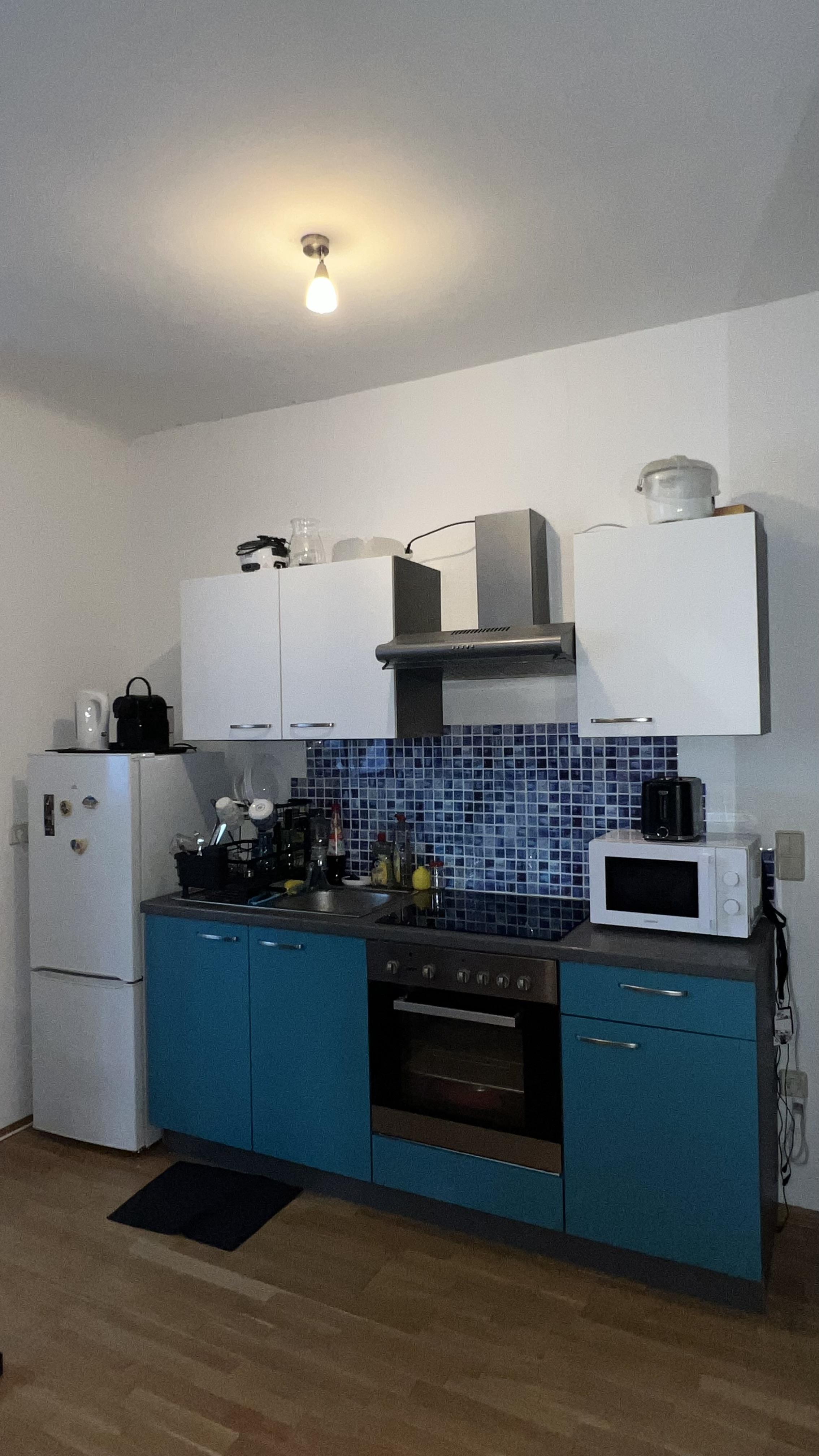 • Ablöse: 3000 € (Küche, Couch, Esstisch, Schreibtisch, Kleiderschrank, Bett, Kühlschrank bleiben drinnen)