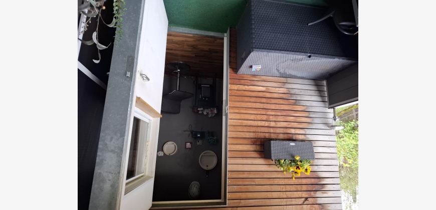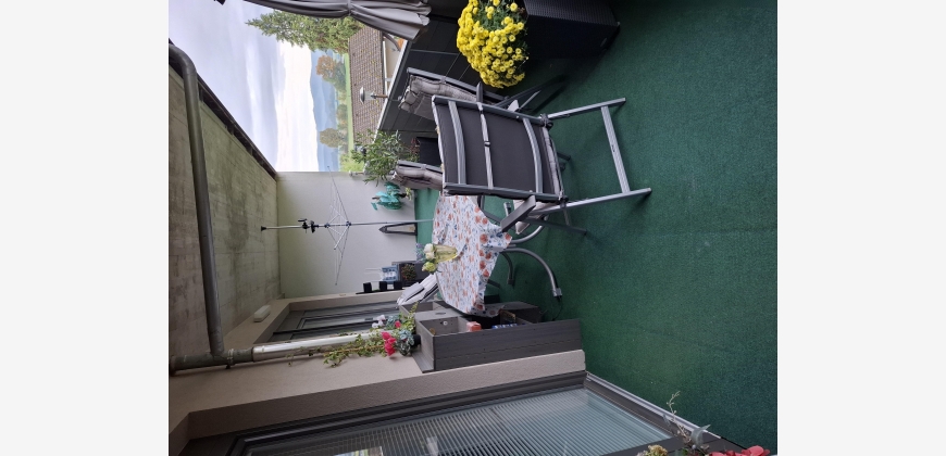 Ebenso befindet sich auf dem Balkon ein kleiner Raum wo wir das Werkzeug aufbewahren und ich benutze ihn als Raucherraum, sowie eine im Boden verankerte Wäschesspinne, ein großer ovaler Terassentisch mit 4 verstellbaren Sesseln und eine Vorrichtung zur Halterung eines Sonnenschirmes am Zaun, der mit 4 befestigten Solarlampen ausgestattet ist.