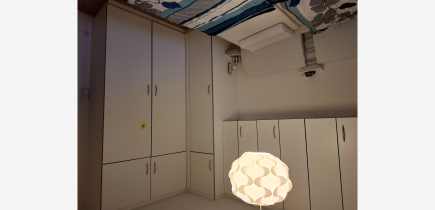 Im Schlafzimmer sind auch unter dem Doppelbett Bewegungsmelder angebracht, sodass man beim Hineingehen und beim Aufstehen Licht hat.