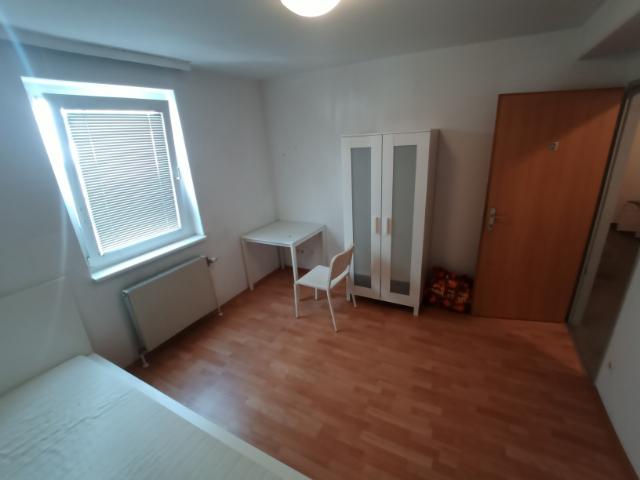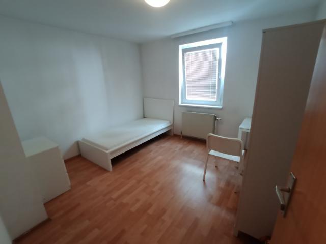 Das betreffende Zimmer ist etwa 12 Quadratmeter groß und möbliert. Es gibt ein Bett, einen Kleiderschrank, einen Tisch und einen Stuhl. Es gibt auch ein Wandregal und einen Spiegel (den ich im Zimmer lassen möchte). Das Rauchen ist im Zimmer erlaubt.