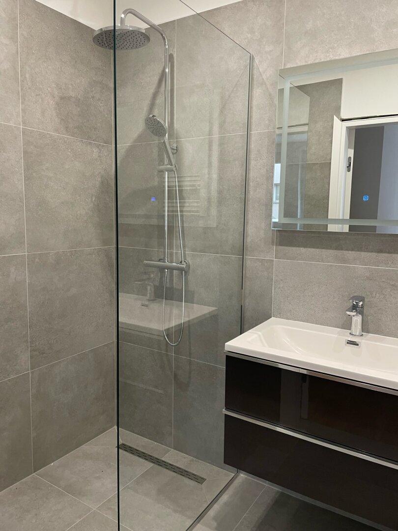 Diese Wohnung verfügt über einen durchdachten Grundriss, eine hochwertige Einbauküche und eine moderne Badausstattung. Jedes Zimmer verfügt über ein eigenes Bad und WC.