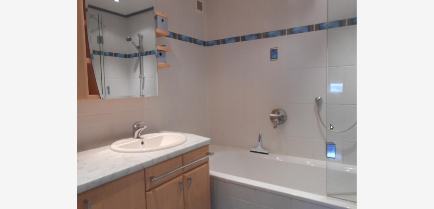 Es handelt sich um ein Einbaubad mit 60cm-Frontloader-Waschnmaschine. Die Polypex Badewanne (180 x 80) ist im Bereich der Dusche mit einer Glastüre ausgestattet.