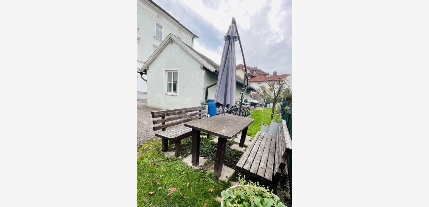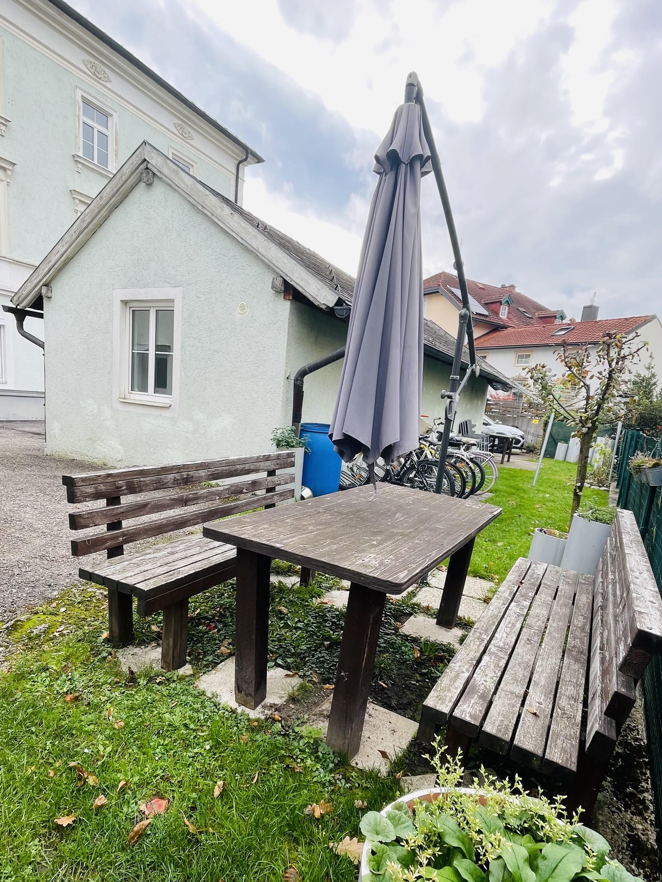 • Kleiner Grünstreifen mit Sitzgelegenheit und Wäschespinne zur Mitbenutzung