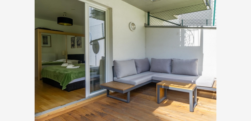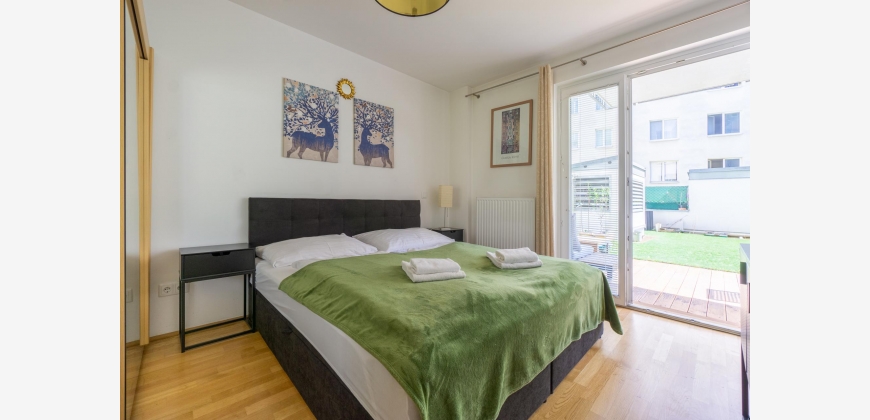 2 Zimmer mit Bad, AR und extra WC sowie einer Terrasse mit Garten zum Chillen oder um in Ruhe zu arbeiten. Der Gartenbereich ist von aussen her für Fremde unerreichbar, in den Hof integriert und absolut ruhig.