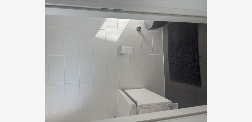 Drei Zimmer mit Laminatböden, Badezimmer (mit Möbeln und Waschtisch) sowie separates WC (mit Möbeln und Waschtisch).