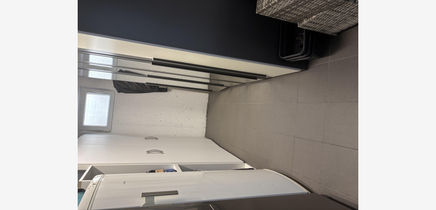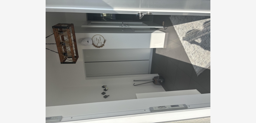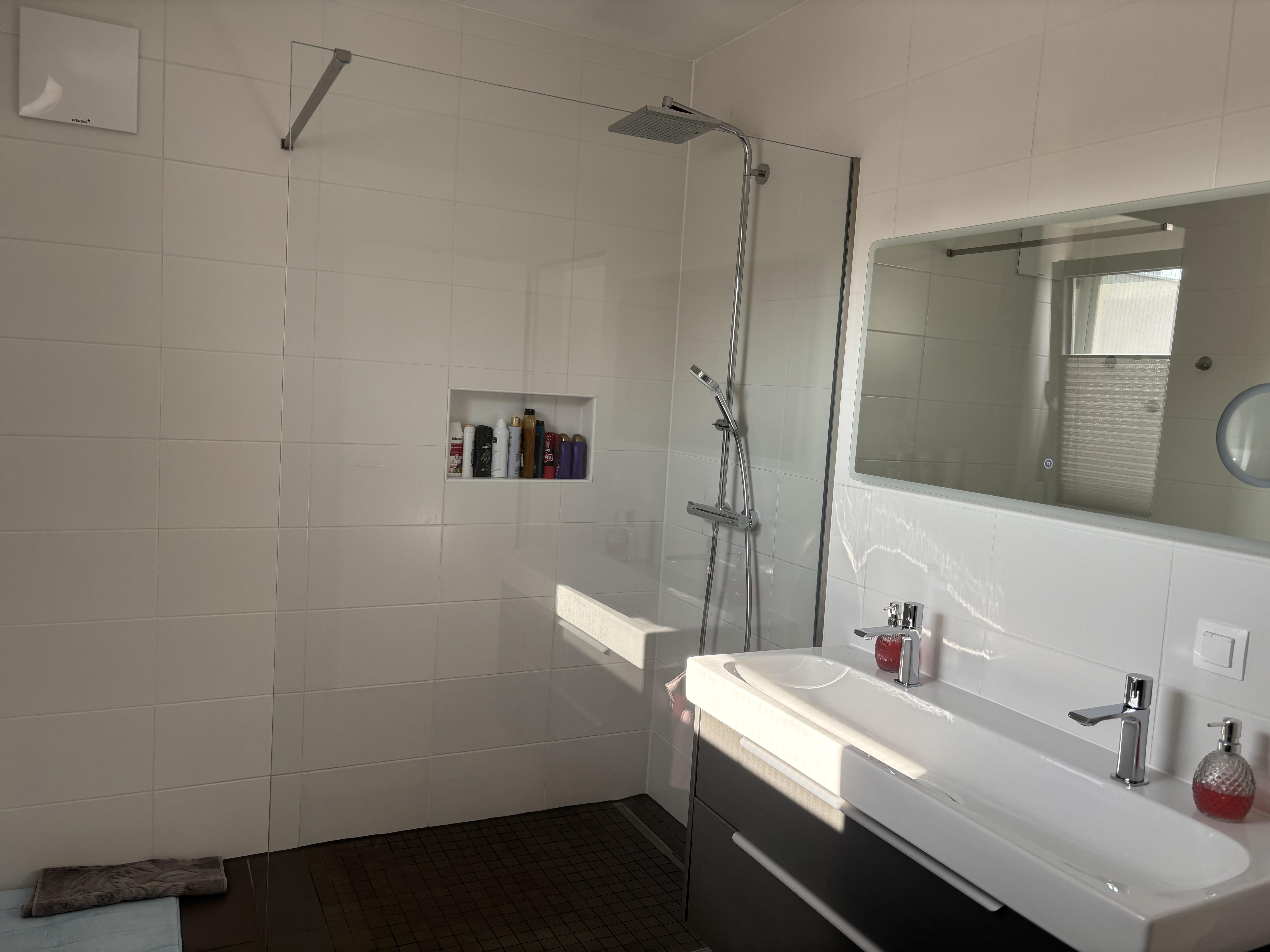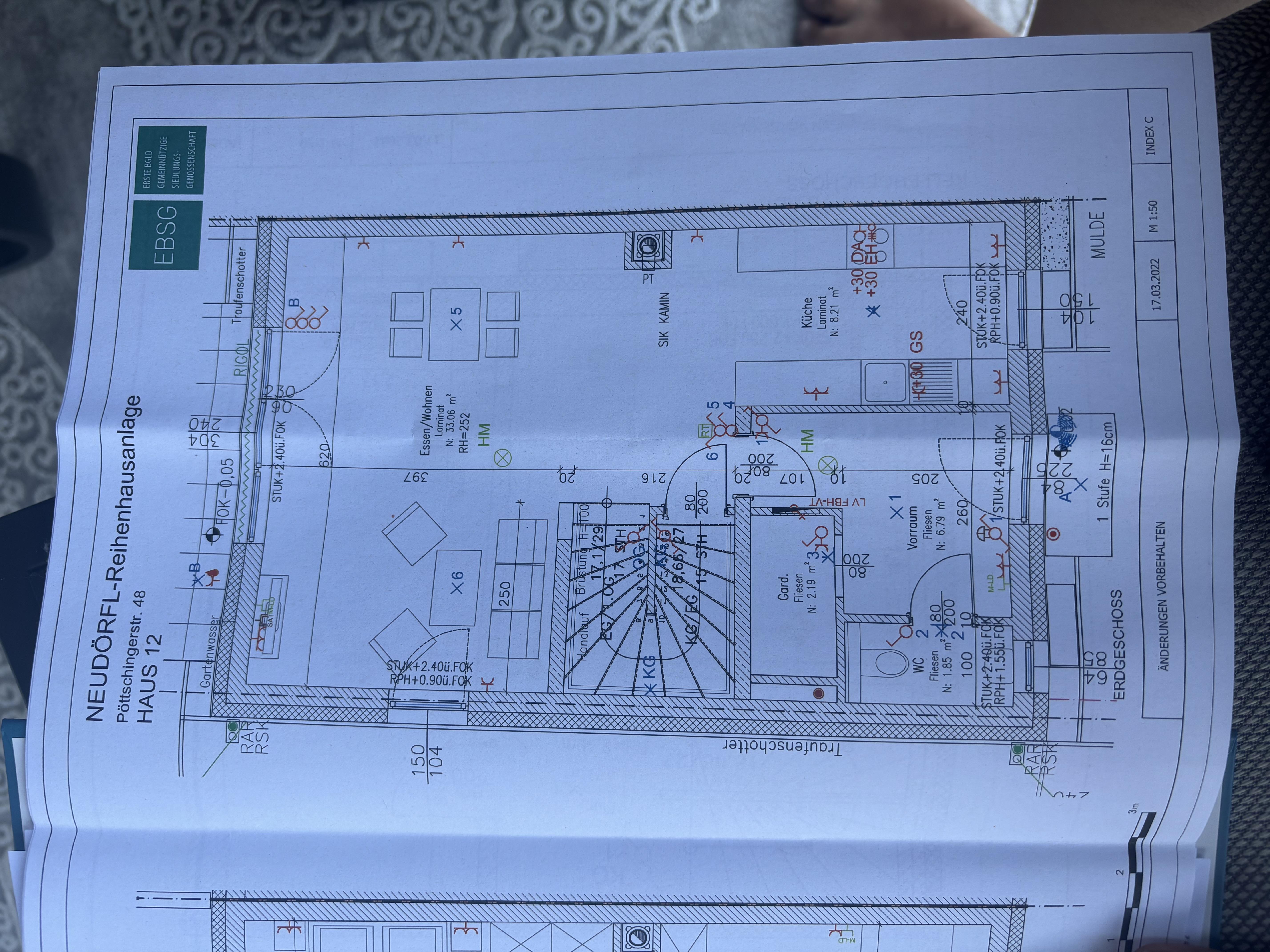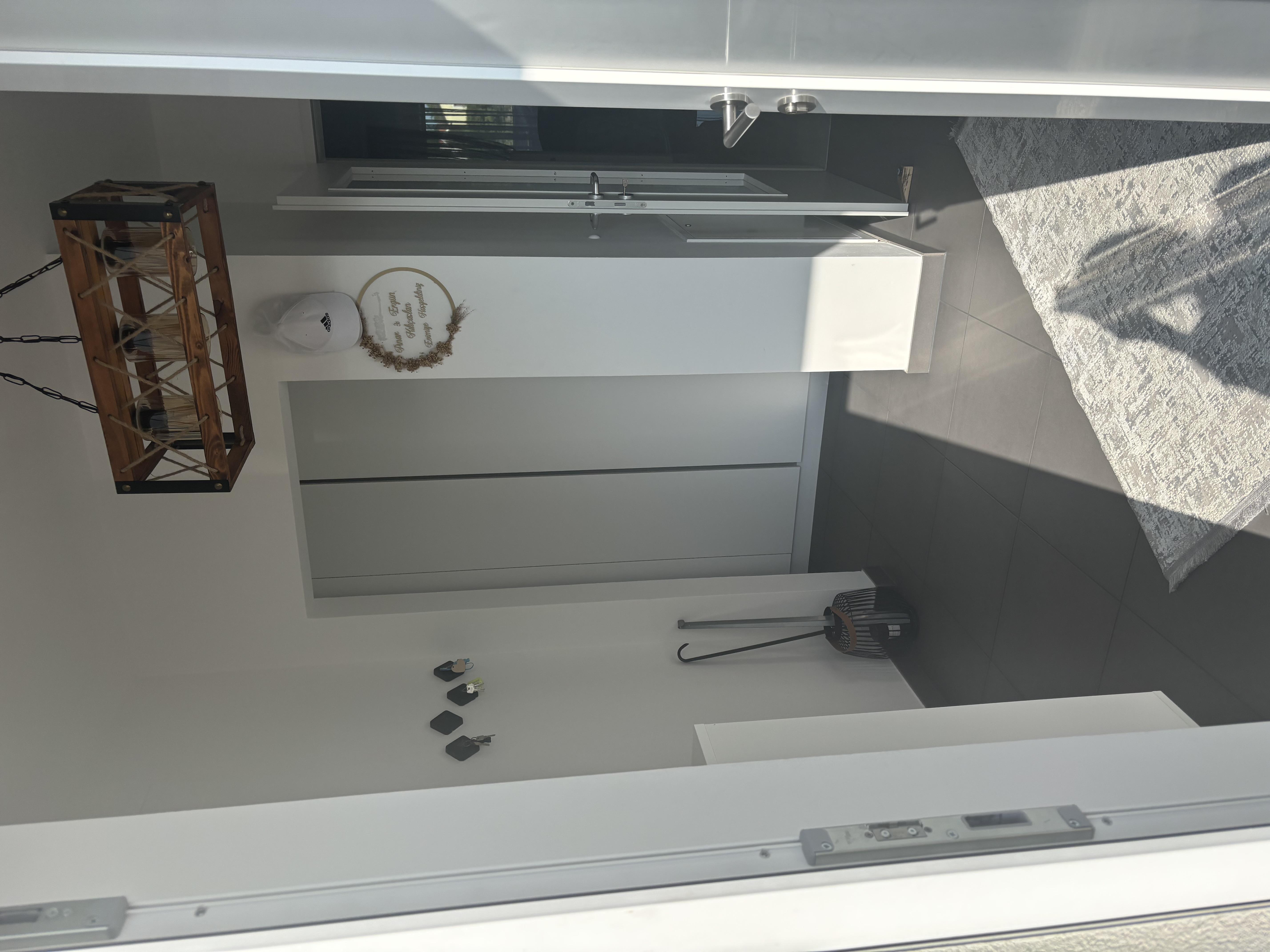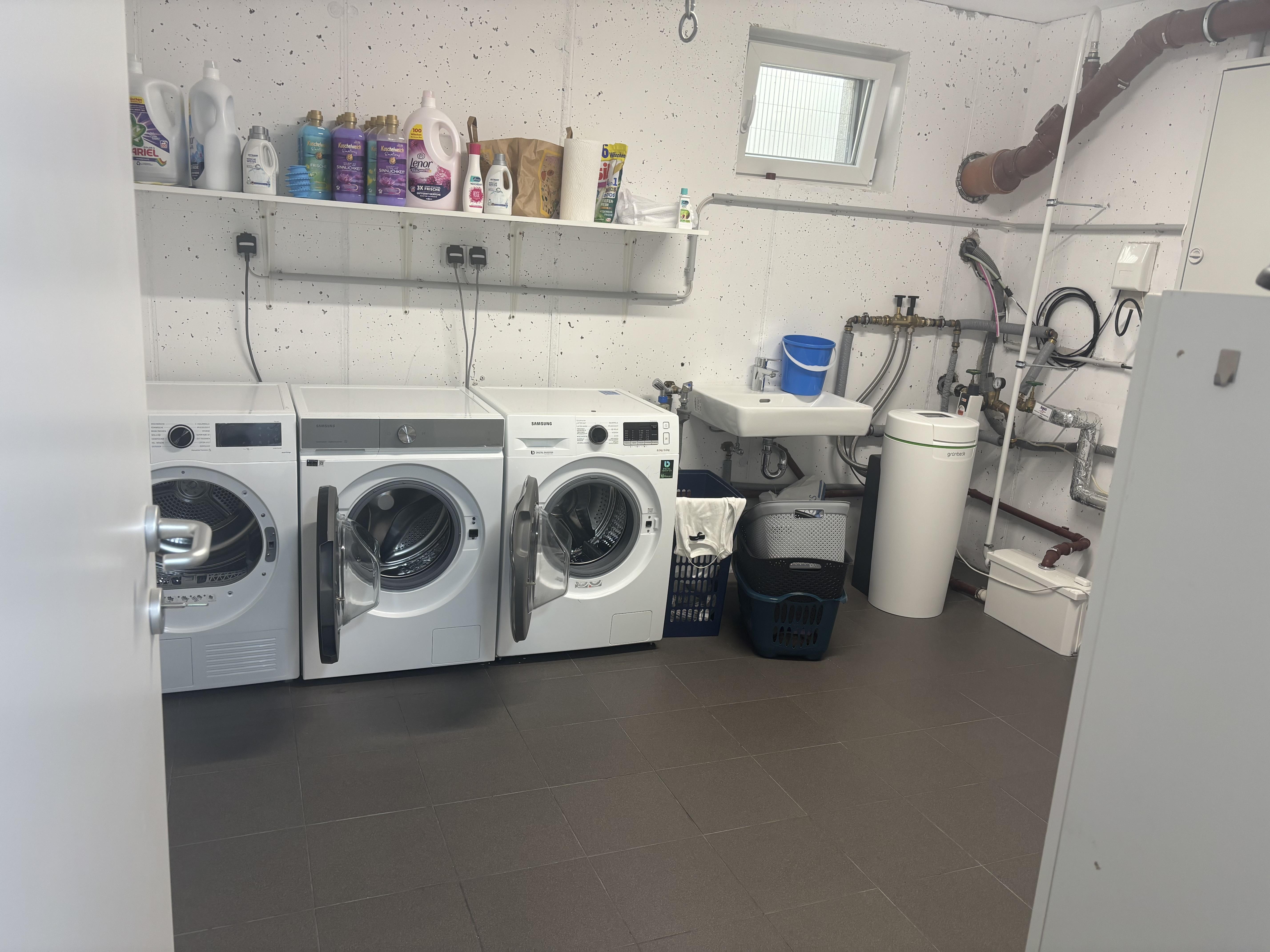 Großzügige Wohnküche mit maßgefertigter Einbauküche im Wert von ca. 50.000 €, Vorraum, WC und Garderobe. Im Kaufpreis enthalten sind alle Einbaumöbel (Küche, WC-Möbel, Garderobe im Vorraum) sowie eine elektrische Pergola im Garten. Böden: Fliesen.
