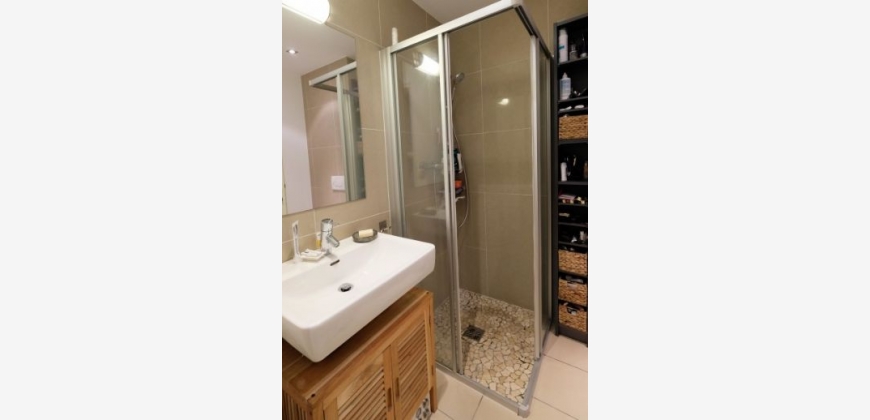 In einer Nische neben dem Badezimmer findet man Stauraum + einen Waschmaschinenanschluss.