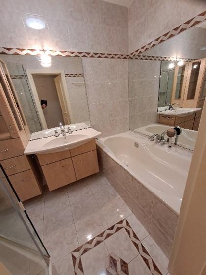 Das Bad ist exklusiv mit einer maßangefertigten Glastrennwand zur Dusche ausgestattet. Die Badezimmermöbel sind ein Markenprodukt mit Designerarmaturen.