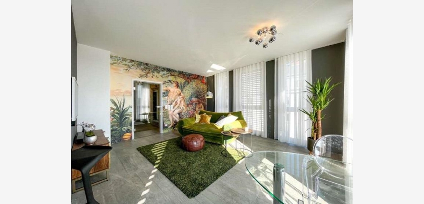 Die Motiv-Sprache des "Garten Eden" zieht sich wie ein roter Faden durch die gesamte möblierte. Die Wohnung in allerbester Innenstadtlage … im obersten Stockwerk (5. OG) . Selbstverständlich gelangt man vom EG mit dem Aufzug bis direkt vor die eigene Wohnungstüre. Der geräumige Eingangsbereich ist zentraler Verteiler: Zur Linken, mit Ausrichtung nach Osten, befindet sich das Schlafzimmer mit “vorgeschaltetem” Schrankbereich. Zur Rechten, nach Osten und Süden ausgerichtet, liegt der wunderbare Wohn-, Koch- und Essraum. Im Bad mit bodenebener XL-Dusche taucht man optisch regelrecht in einen Dschungel ein. Die raumhohen Fenster in allen Räumen unterstreichen mit viel Tageslicht dieses ganz besondere Ambiente. Absolutes Highlight ist die allg. Dachterrasse, die sich unmittelbar über dieser Wohnung – ein wunderbares urbanes Grünrefugium über den Dächern von Linz.