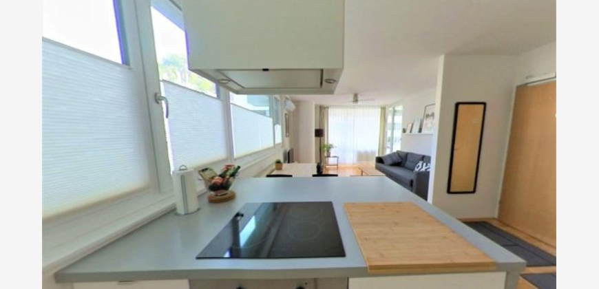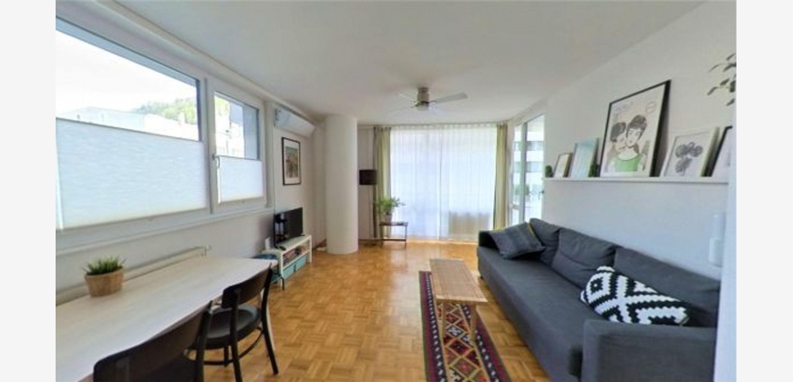 Apartment Stunning Salzburg apartment - central, sunny and comfortable - with balcony, parking & air conditioning The apartment is located on the first floor of a modern building with a lift and underground car park. It has a large, open-plan kitchen and living room area. The fully equipped kitchen including coffee maker has a generous breakfast bar and in the living room is a dining table, a comfortable sofa and smart TV. There is also a south-facing balcony for that glass of wine on a summer evening. The extra bedroom with a king size bed has plenty of storage and the neat bathroom has a bathtub with shower.