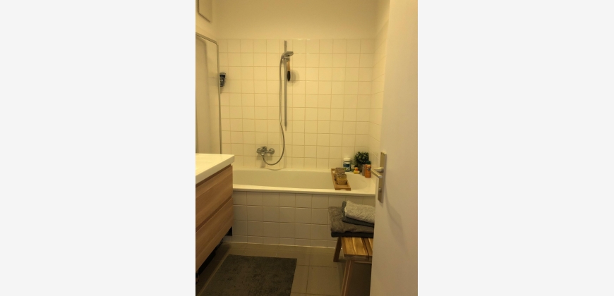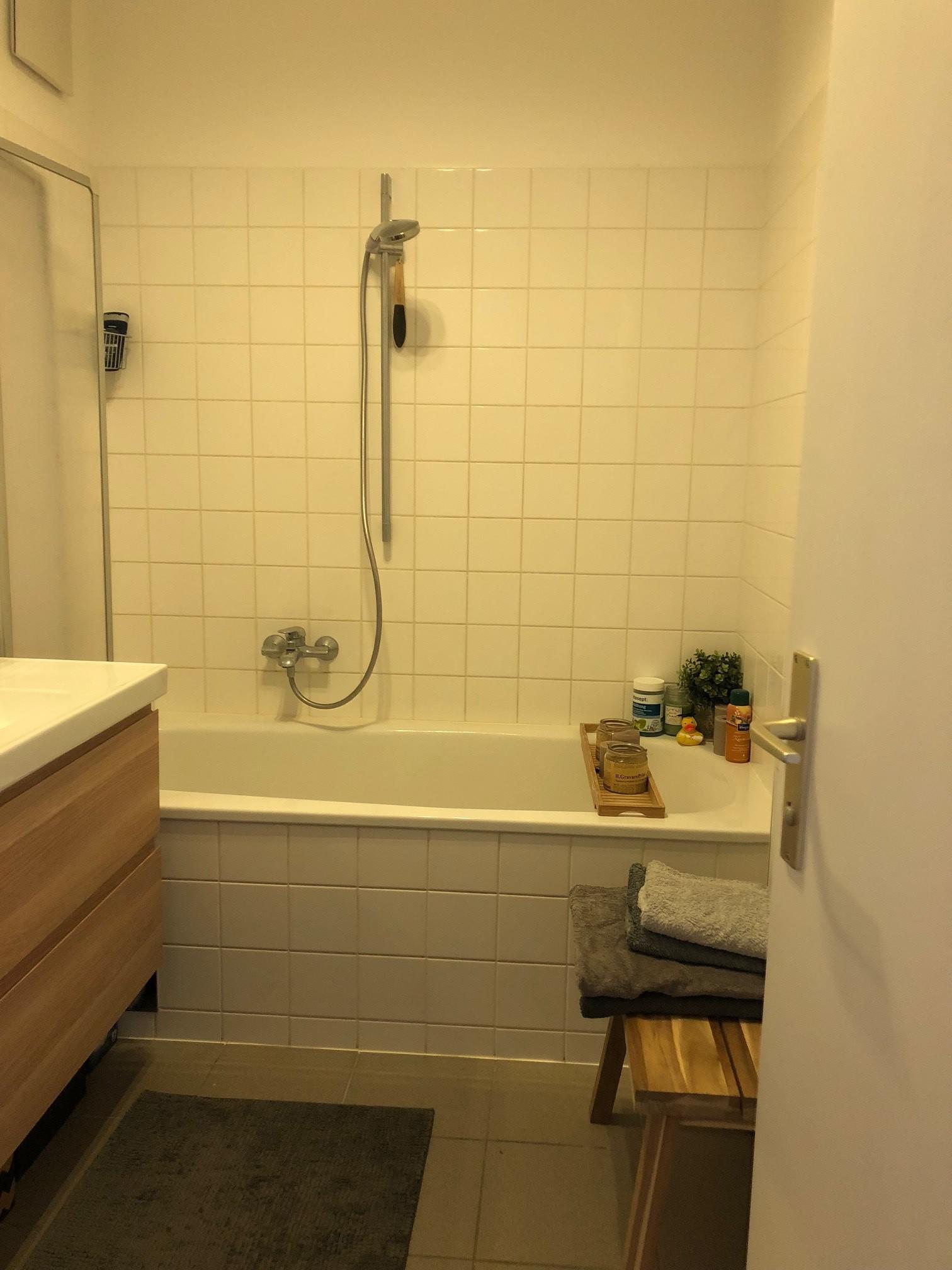 • Bad mit Waschbecken, Badewanne, Waschmaschine