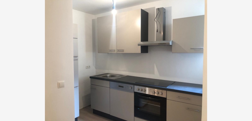 In die Wohnung gelangt man über einen großen Vorraum, der mit der Küche direkt verbunden ist, sodass hier eine Sitzecke für alle WG-Bewohner Platz finden kann. Die Küche ist voll ausgestattet mit Kühlschrank, Gefrierfach, Geschirrspüler, Dunstabzug, Backrohr und Herd mit 4 Platten. Bad (mit Badewanne und Dusche ausgestattet) und WC sind getrennt begehbar.
