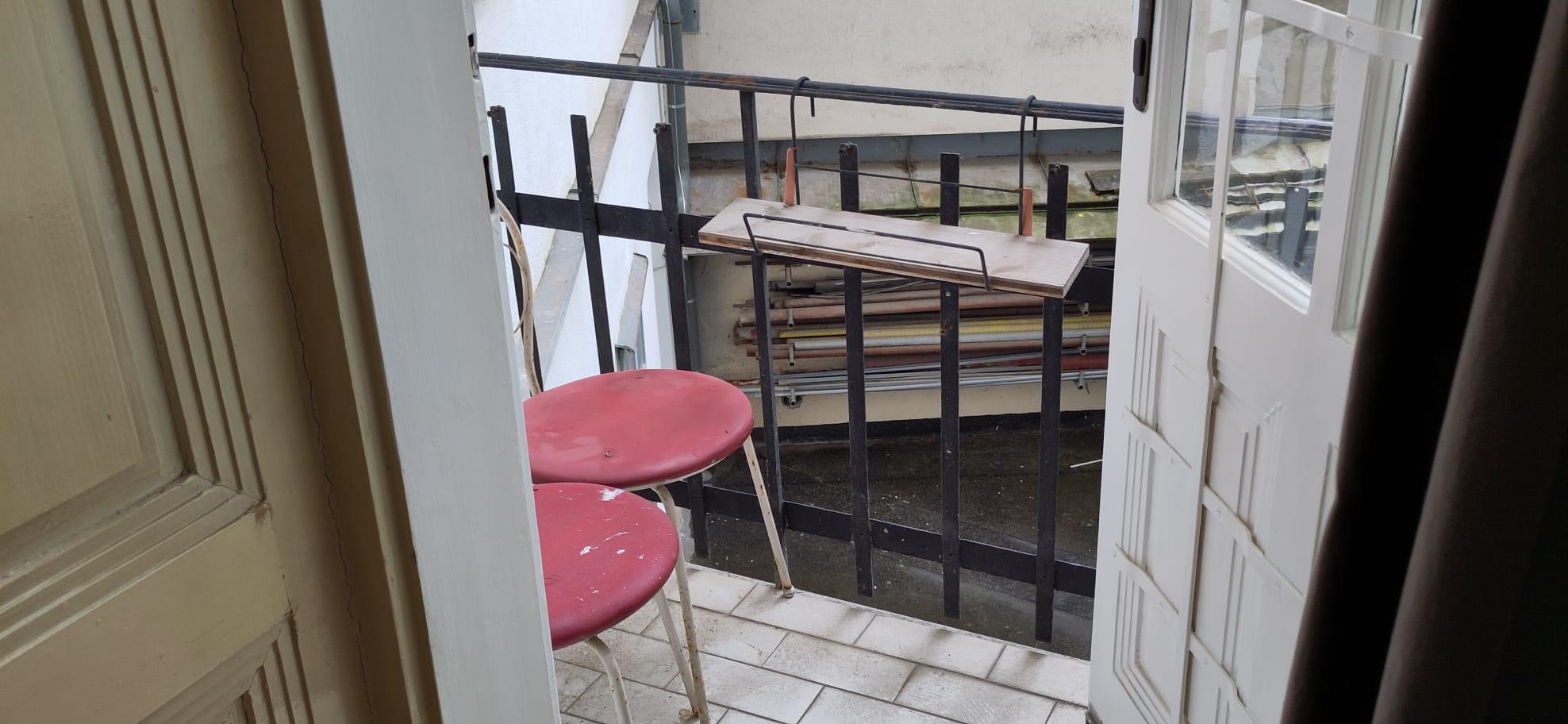 - Ein kleiner Balkon mit Blick in einen ruhigen Innenhof.