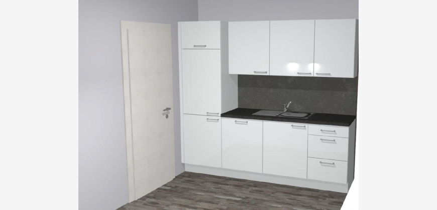 Sie besteht aus Vorraum, Wohn-/Essraum inkl. neuer Einbauküche, Schlafzimmer sowie Bad/WC und Abstellraum. Ein südwestlich ausgerichteter, 11 m² großer Balkon lädt zum Entspannen ein, das praktische Kellerabteil (ca. 5 m²) bietet ausreichend Stauraum und der TG-Parkplatz kann bequem mit dem Lift erreicht werden.
