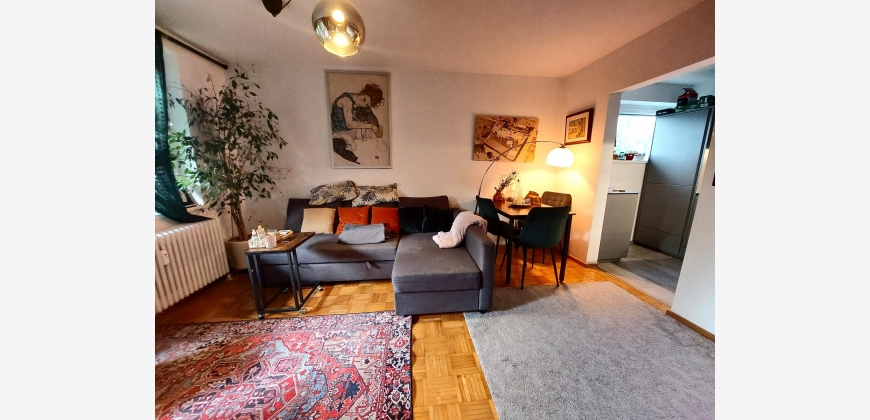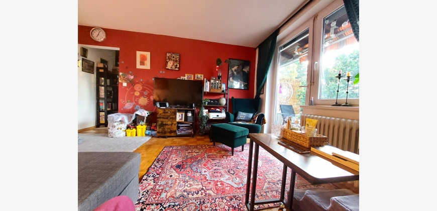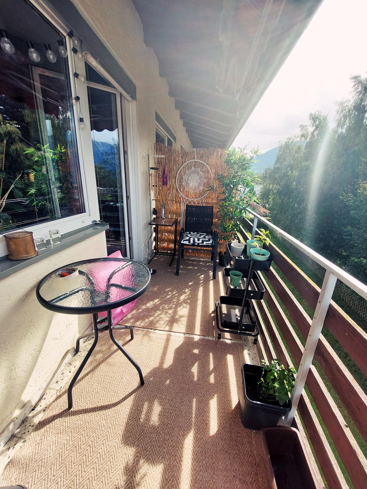 Die Wohnung hat eine schöne Aufteilung. Der Balkon befindet sich auf der Sonnenseite, aber es ist auch eine große Markise vorhanden.