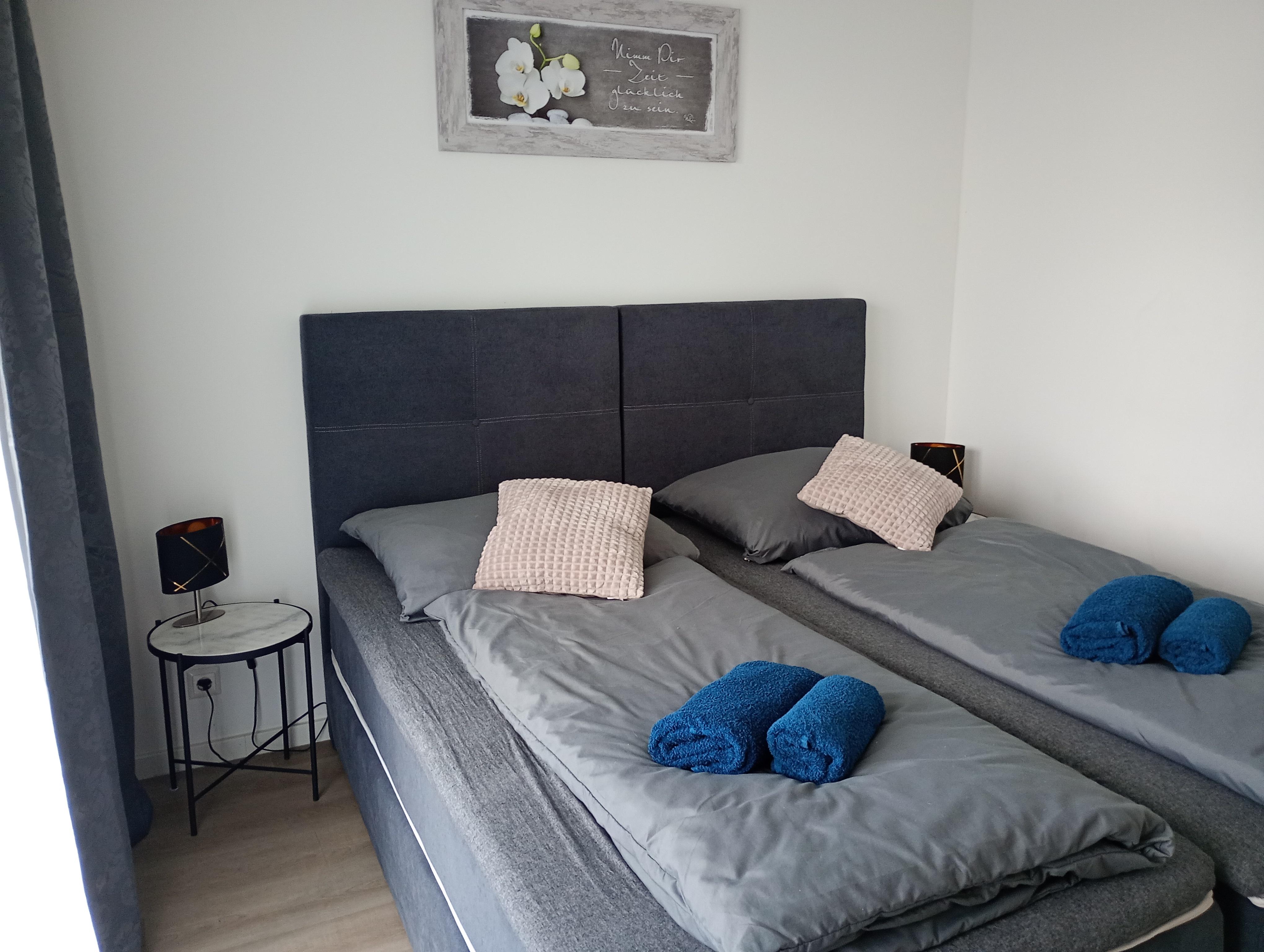 Die Wohnung hat ein Doppelbett und eine super bequeme Schlafcouch im Wohnzimmer.