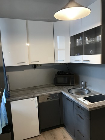 Sehr hell, Vorraum, Wohnzimmer, komplette eingerichtete neue Küche, Bad mit Eckbadewanne, WC, Schlafkabinett