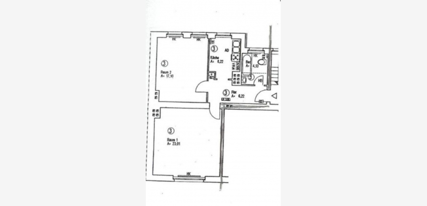 Der Flur und die jeweils einzeln begehbaren Zimmer sind mit Laminatfußböden ausgestattet. Die sonnige 2- Zimmerwohnung befindet sich in einem im Jahr 2000 sanierten Gebäude. Die Wohnung wird komplett renoviert übergeben. Der Einbau der Küche und des Badezimmers erfolgte im Jahr 2016.