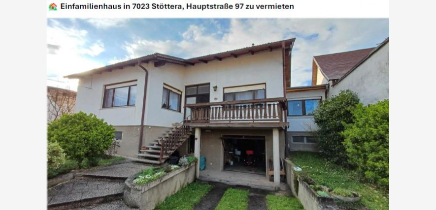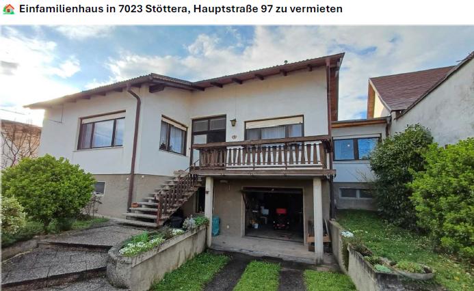 Zur Vermietung gelangt ein gepflegtes Einfamilienhaus in 7023 Stöttera, Hauptstraße 97. Das Haus wurde laufend saniert (u. a. Fenster, Dach, Heizung, Klimageräte) und bietet eine ideale Kombination aus Wohnkomfort und praktischer Ausstattung. Weitere Fotos sind auf Anforderung verfügbar.