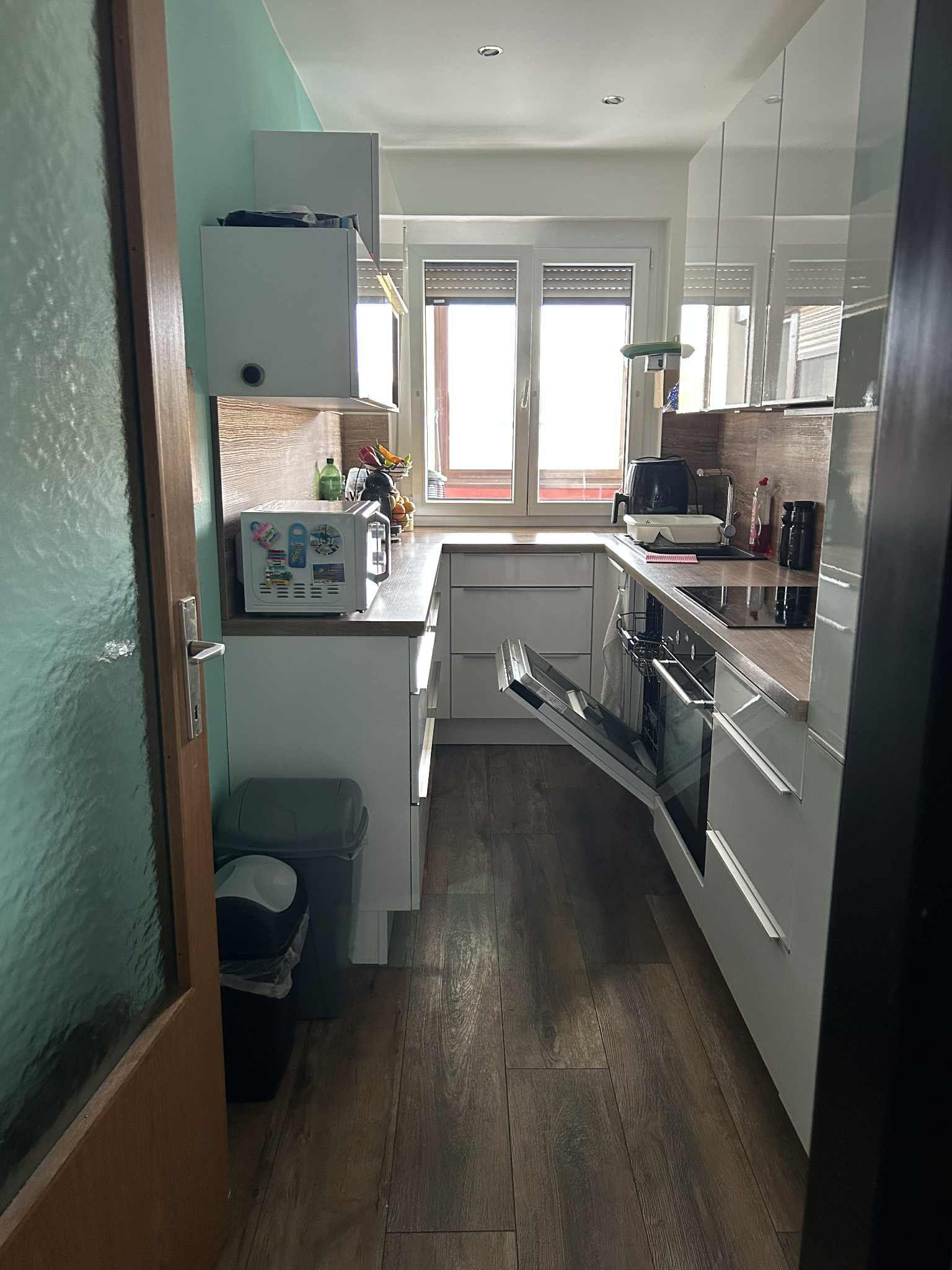 steht außerdem eine Einbauküche zur Verfügung. Die Loggia ist nach Osten gerichtet und bietet einen Blick ins Grüne. Die Wohnung befindet sich in einer ruhig gelegenen Straße mit Gemeinschaftsgarten und liegt zentral, da alles in Fussreichweite erreichbar ist. Besichtigungen sind nach Vereinbarung möglich.