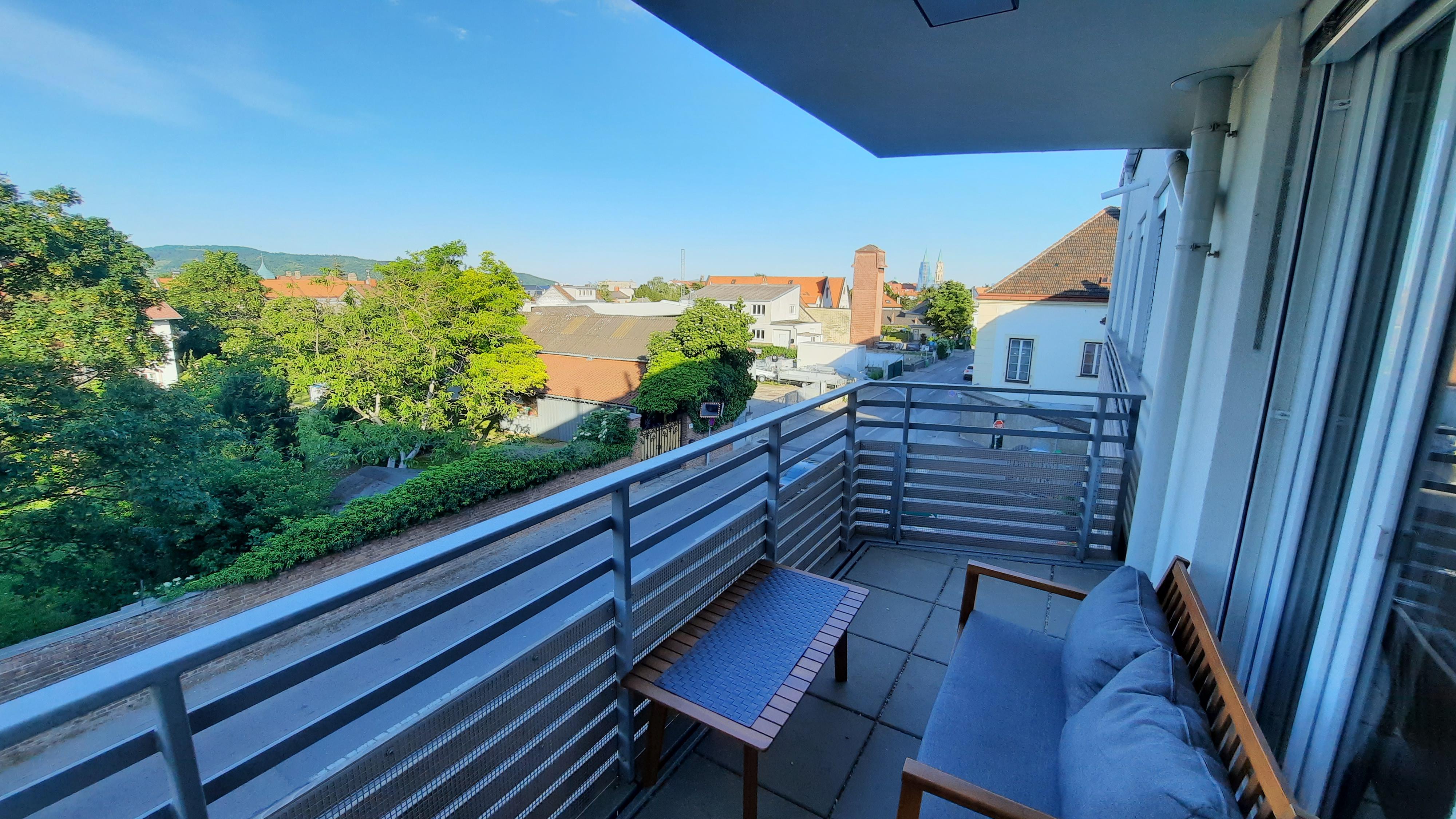 Moderne, naturnahe Wohnung in Klosterneuburg, 15 Minuten von Wien entfernt. Bestehend aus einem Vorzimmer, einem Wohnzimmer, einem Schlafzimmer, einer eingerichteten Küche, einem Badezimmer mit WC, einem Abstellraum und einem großen Balkon. Die Nutzfläche beträgt ca. 51,06m².