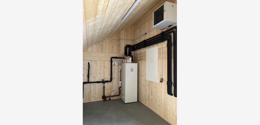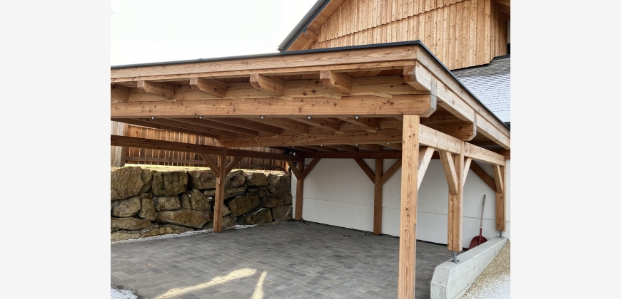 Praktisch und modern zugleich ist der ca. 15m² großer Technikraum, der optimalen Stauraum bietet. Ein geräumiges Lärchenmassivholz-Carport mit ca. 44 m² bietet Platz für zwei Autos und schützt sie vor Witterungseinflüssen. Für eine perfekte Optik wurde ein Gründach für Lärchenmassivholz-Terrasse und Carport gewählt. Die neueste Wärmepumpentechnologie sorgt für effiziente Heizung und Klimatisierung, während das spezielle Tondach (Wiener Tasche, Doppeldeckung, grau antik) dem Haus eine einzigartige Ästhetik verleiht und gleichzeitig für Langlebigkeit steht.