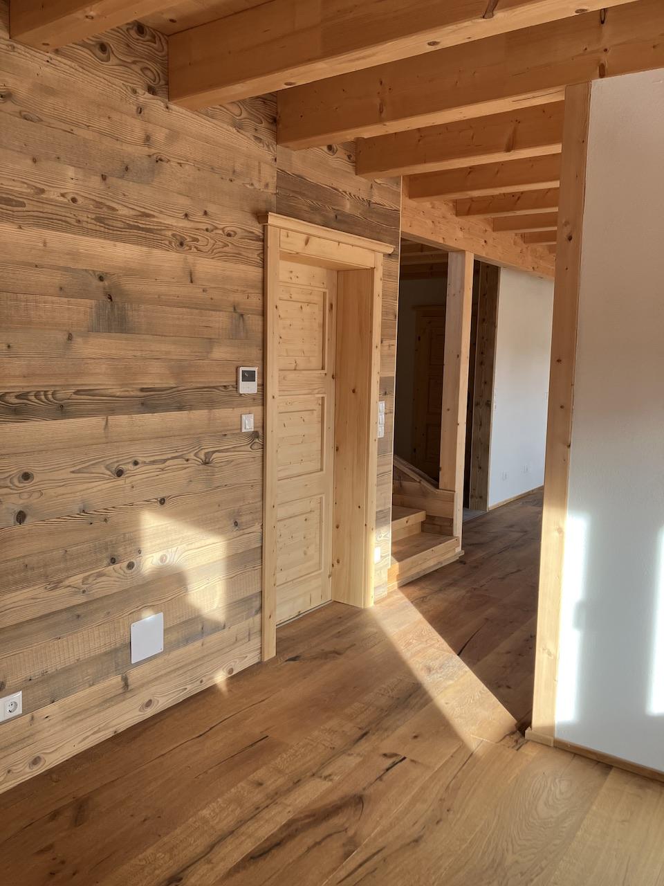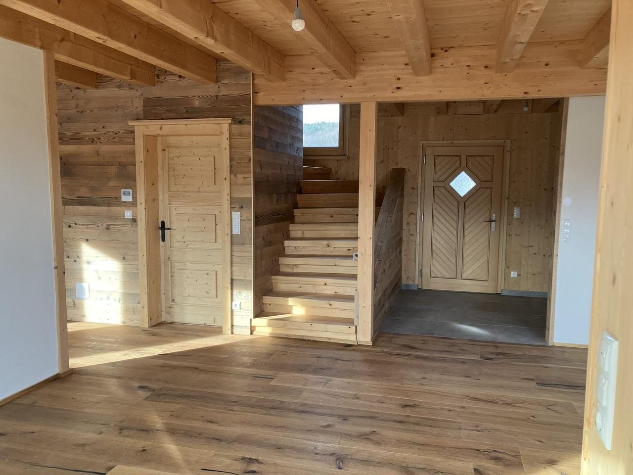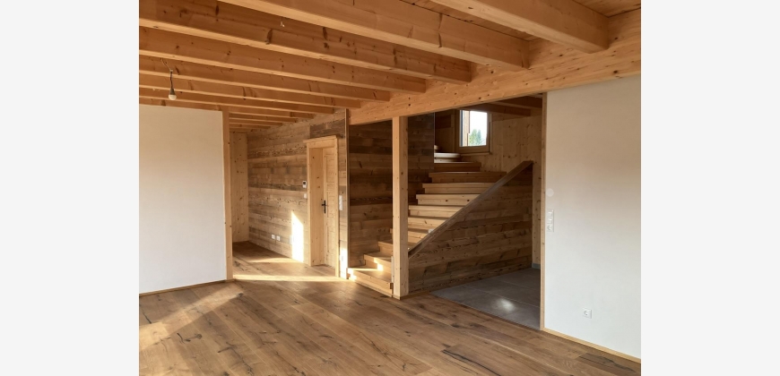 Sowohl die geschwungene Massivholzstiege (8 cm Vollholz) und die Massivholz-Innentüren wurden von uns selbst gefertigt und sind somit einzigartig.