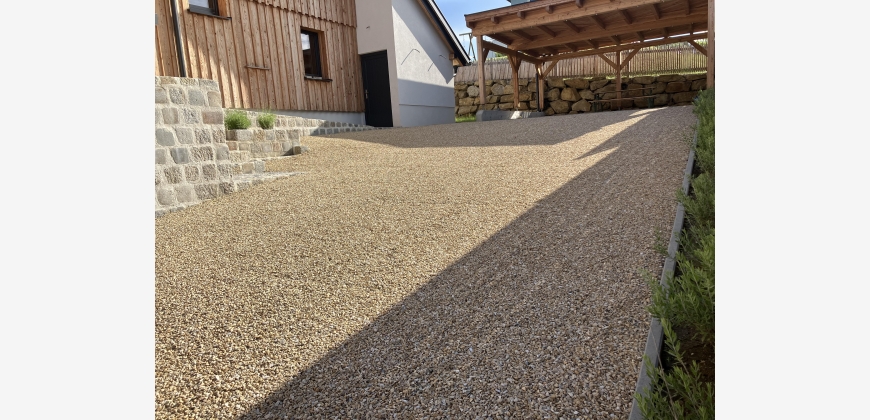 Das obere Haus hat außerdem einen kleinen Innenhof mit einer zusätzlichen Stein-Terrasse (ca. 9 m2), wo man abends den Sonnenuntergang nach getaner Arbeit genießen kann.