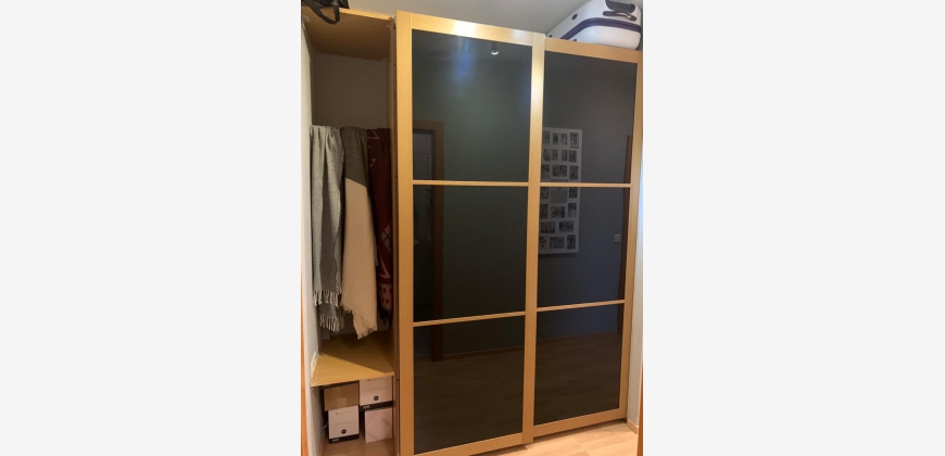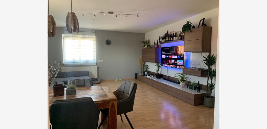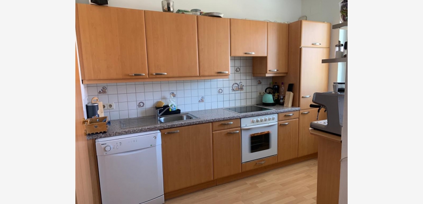 Die Wohnung verfügt über ein großes Wohn/Esszimmer mit einer wunderschönen Maẞangefertigten Wohnwand mit viel Stauraum und einer anschließenden vollausgestatteten Küche.