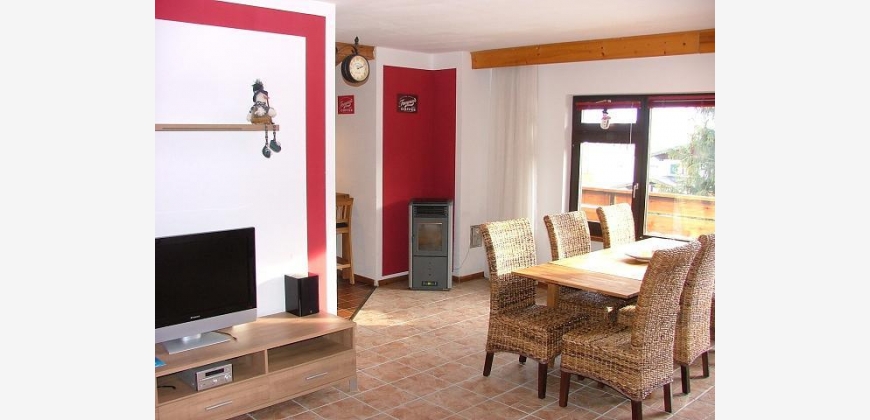 drei Schlafzimmer, große und helle Küche mit gemütlichen Übergang zum Panoramafenster mit Esszimmer und Wohnzimmer mit zusätzlichem Pelletofen für gemütliche Abende, Badezimmer mit Wanne, separate Toilette, Abstellraum, großer und heller Eingangsbereich, ein Balkon Süd-Ost mit Markise und zweiter Balkon Nord-West, ein Kellerabteil.