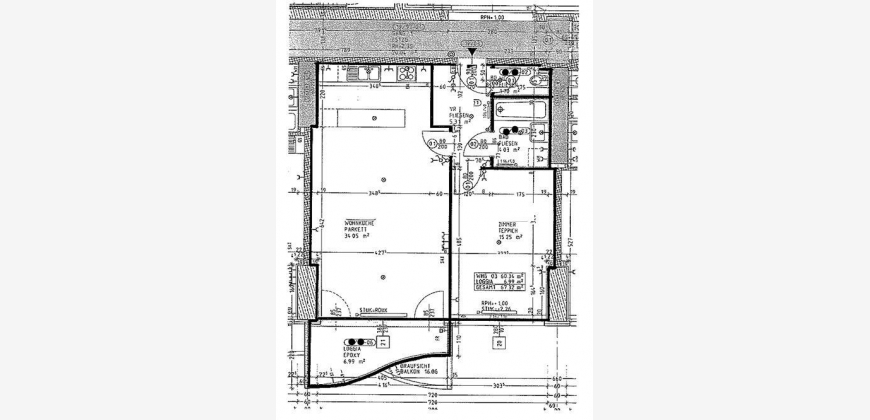 Wohnbereich 61m², Loggia 7m², Kellerabteil & Garagenplatz.