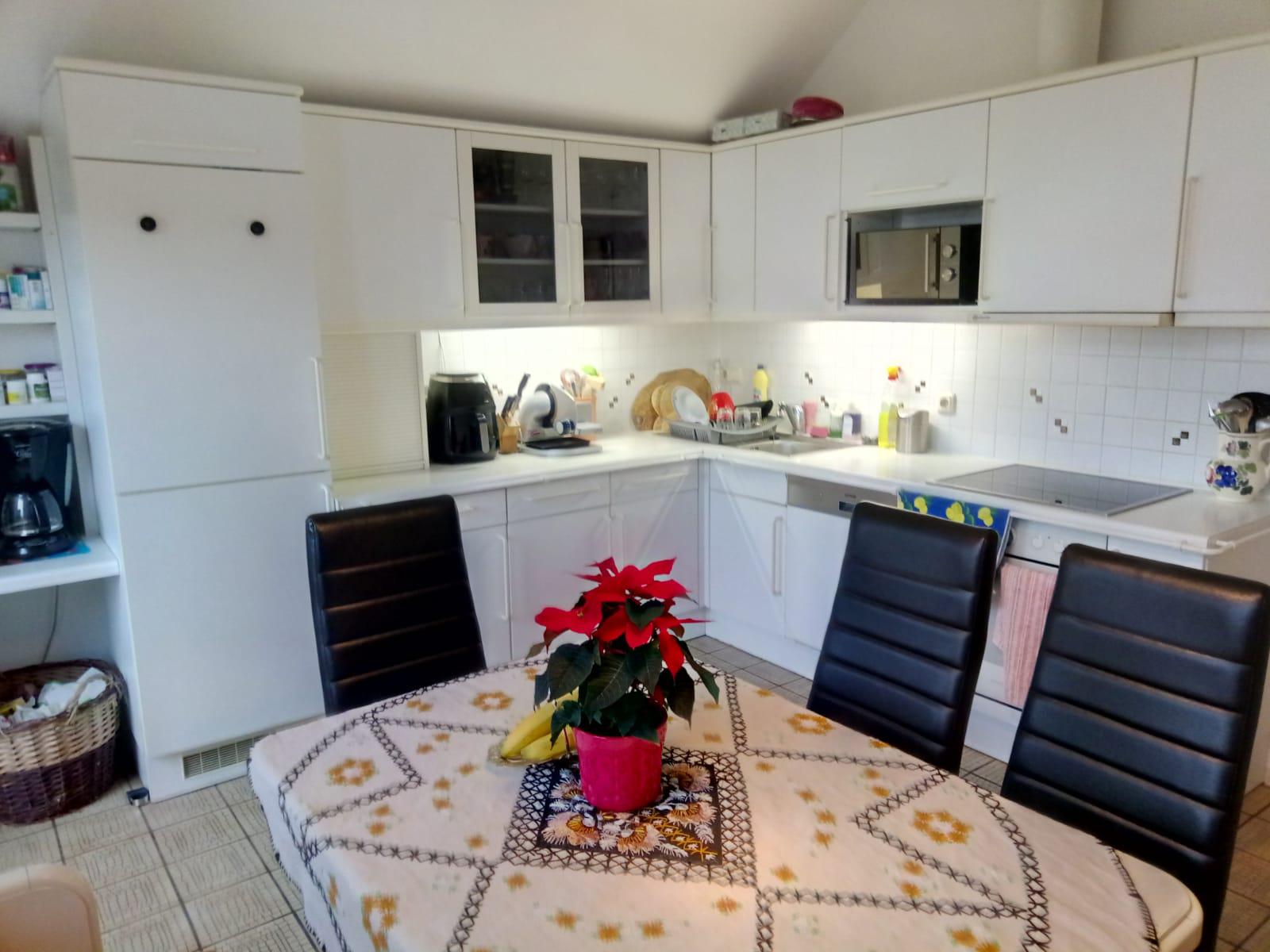 In der Küche ist eine eingebaute KAPO- Küche samt Geräten, eine Eckbank, Tisch und 2 Stühle.