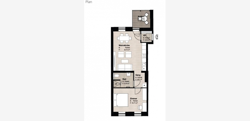 Die ca. 50 m² große Wohnung überzeugt durch eine durchdachte Raumaufteilung sowie moderne Ausstattung. Hochwertiger Eichenparkettboden verleiht den Wohnräumen eine warme und elegante Atmosphäre. Für angenehmes Raumklima sorgt eine integrierte Klimaanlage – ideal für heiße Sommertage. Ein besonderer Pluspunkt ist der Balkon, der ruhig in den Innenhof ausgerichtet ist und zum Entspannen einlädt.