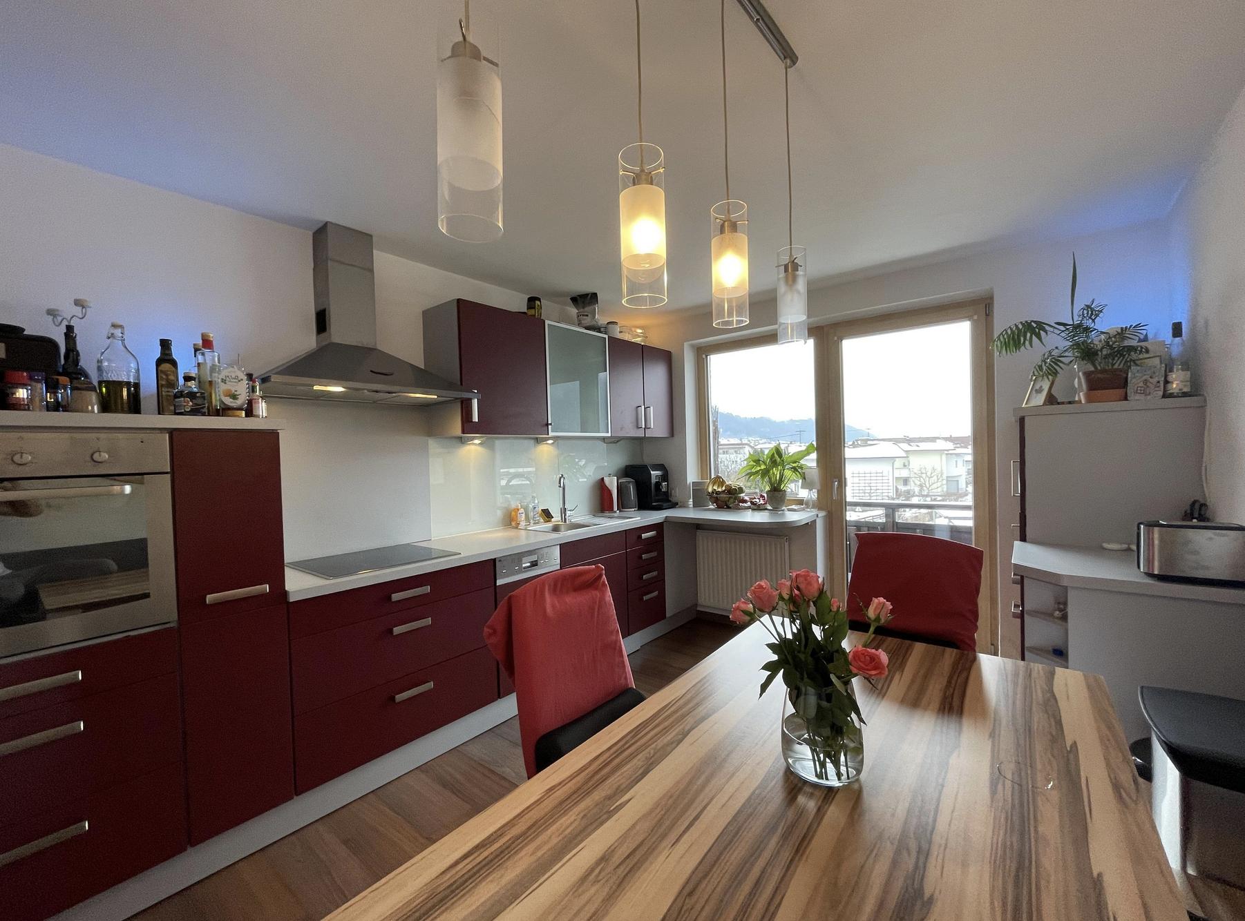 Gemütliche preiswerte 65qm große Wohlfühlwohnung mit toller Aussicht in Hatting. Bestehend aus voll ausgestatteter Küche(13qm) mit großer Sitzecke und Zugang zum großen Balkon. Wohnzimmer(22qm) mit einem superschönen Schwedenofen und ebenfalls Zugang zum Balkon. Neuwertig renoviertes Badezimmer(5,5qm) incl. Badmöbeln und Badewanne. Schlafzimmer(16qm). Zur Wohnung gehört ein Kellerabteil sowie die Nutzungsmöglichkeit eines Wäschekellers, außerdem ein KFZ Stellplatz direkt vorm Haus. Die Wohnung liegt nur 3 Fussminuten vom Bahnhof in Hatting entfernt. Die Inntalautobahn erreicht man innerhalb von zwei Minuten über die „Geheimauffahrt“ Raststation Rosenberger/Pettnau. Innsbruck ist daher sehr komfortabel in nur 15 Minuten zu erreichen. Zu guter Letzt sei noch erwähnt, dass Sie sich in dem 8 Parteienwohnhaus in sehr netter Hausgemeinschaft befinden.