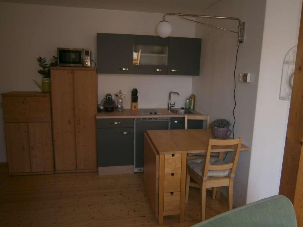 Ausgestattete Küche mit allen Haushaltsgeräten (Mikrowelle, Backofen, Toaster, Wasserkocher, Nespresso-Kaffeemaschine) sowie Geschirr, Geschirrtüchern, Reinigungsmitteln, Staubsauger usw.