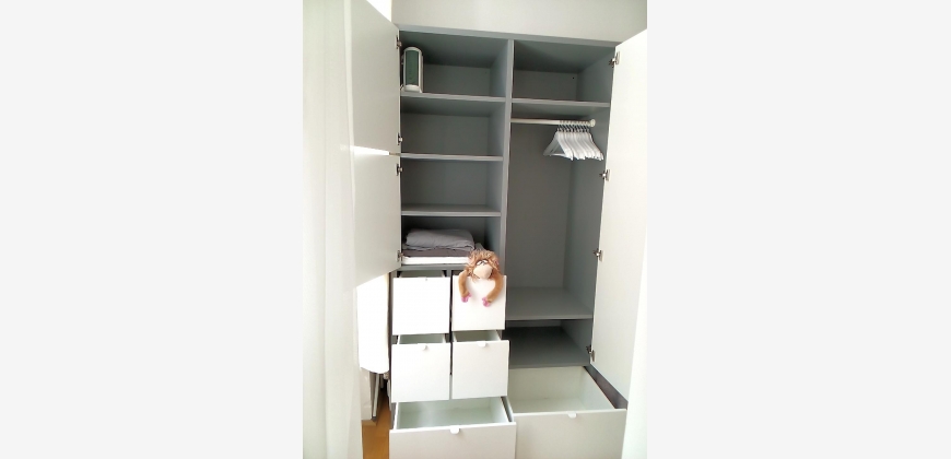 • Schlafzimmer mit Doppelbett Queen Size 160cm breit und Kasten mit viel Stauraum