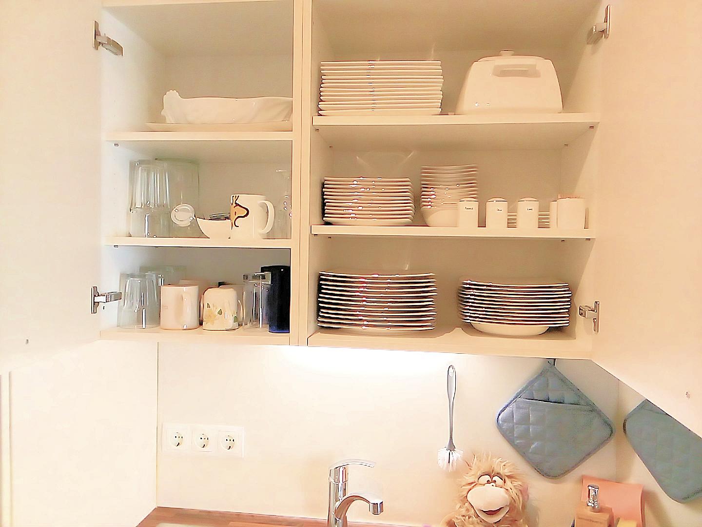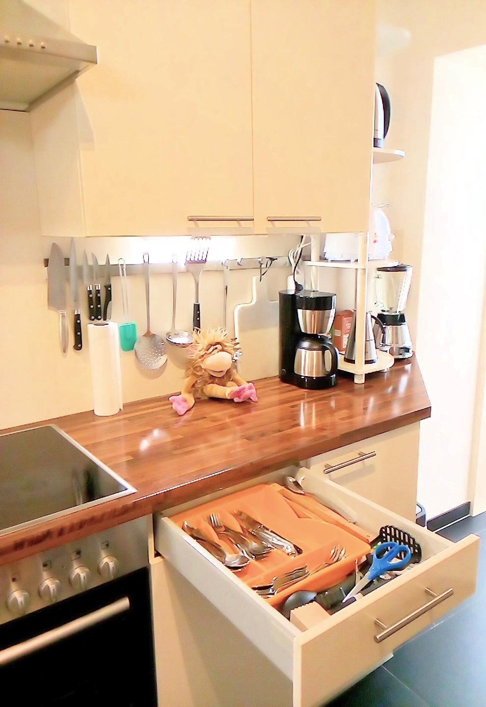 Für Ihre ersten Tage in dieser Wohnung ist vom WC-Papier über Seife, Reinigungsmitteln, Tee, Kaffee etc. alles vorhanden.