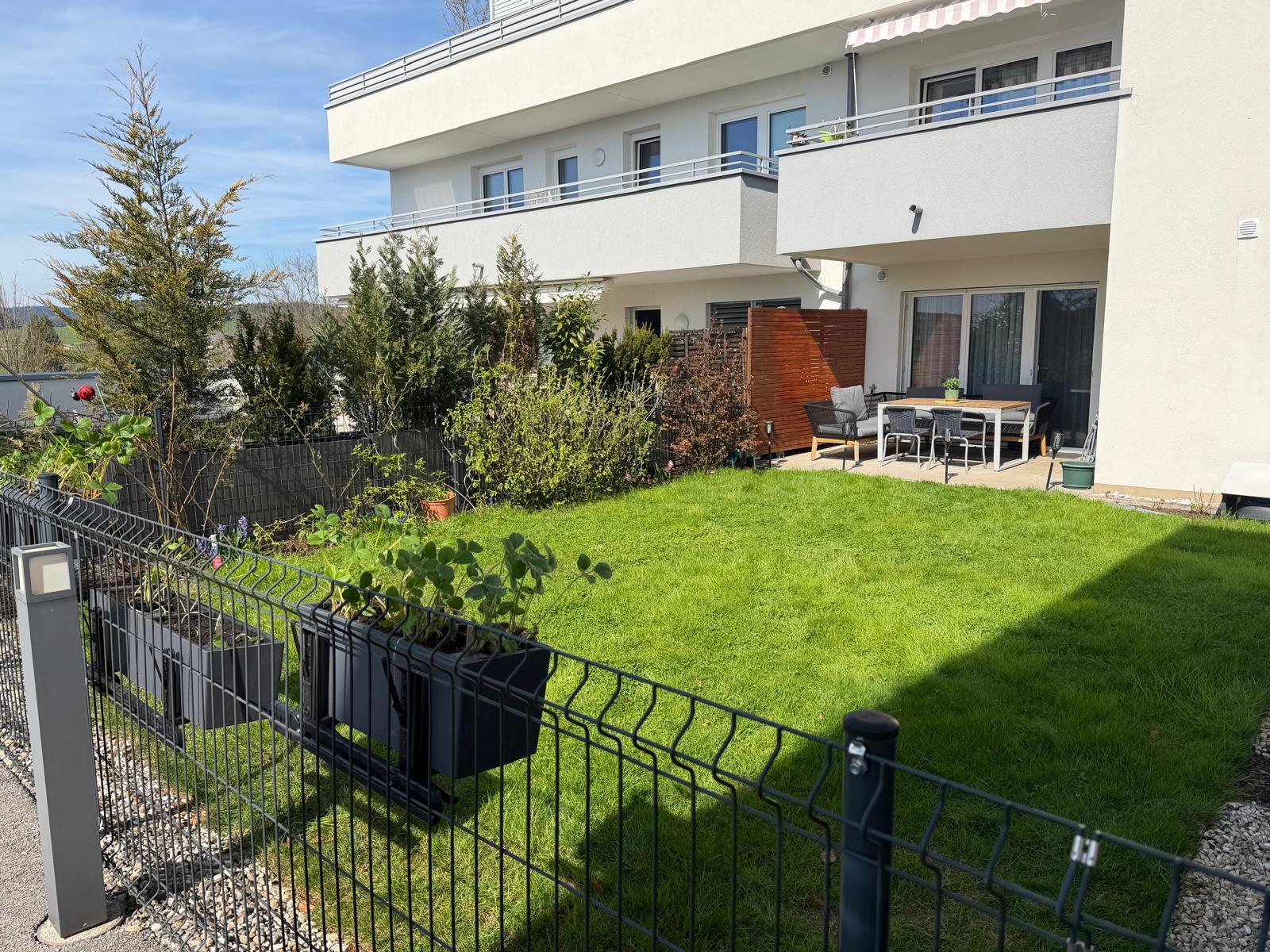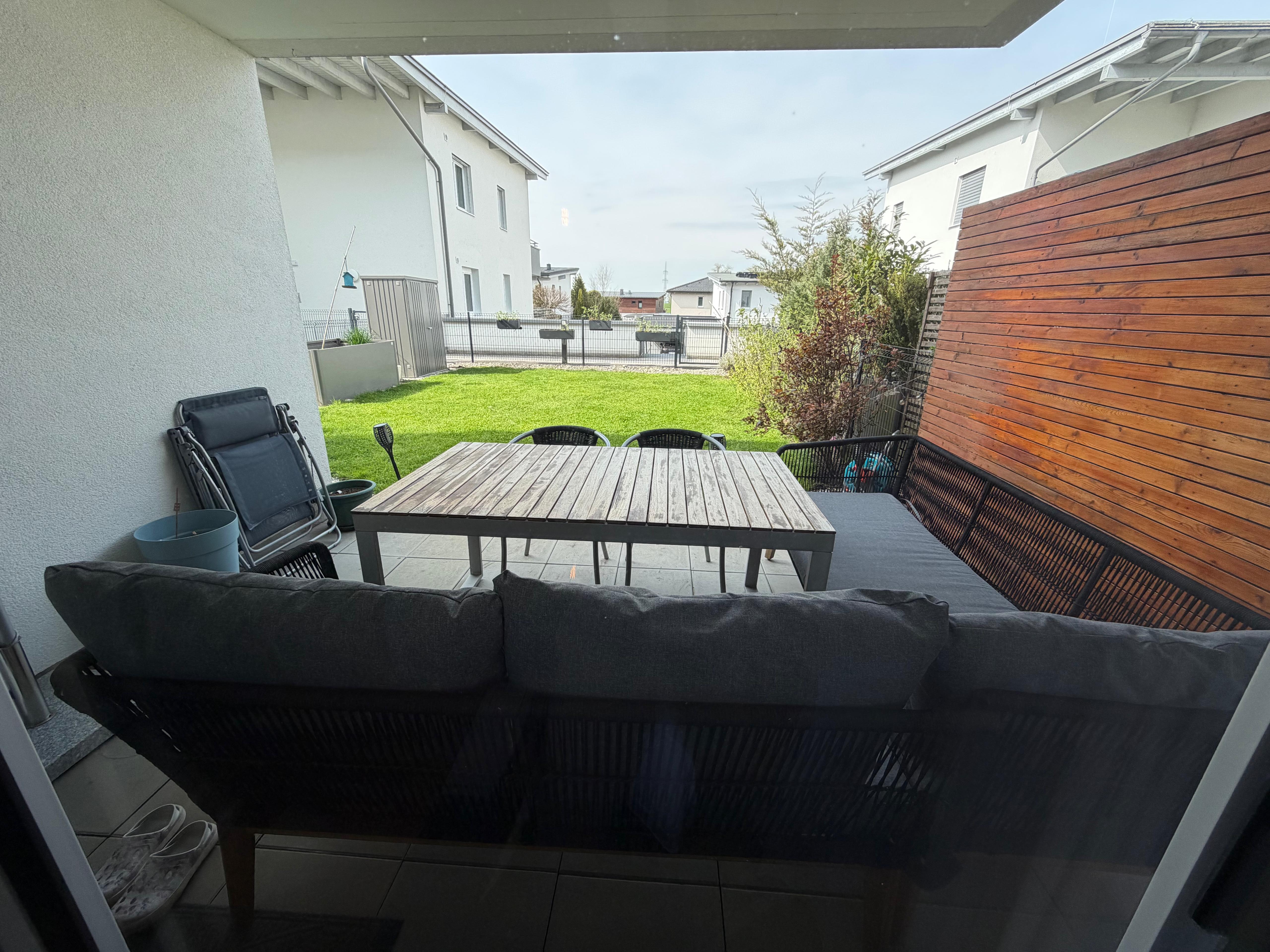 Ein besonderes Highlight ist der direkte Zugang vom Wohnbereich auf die ca. 10 m² große Terrasse und in den anschließenden, rund 64 m² großen Eigengarten - ideal zum Entspannen oder für gemütliche Stunden im Freien.