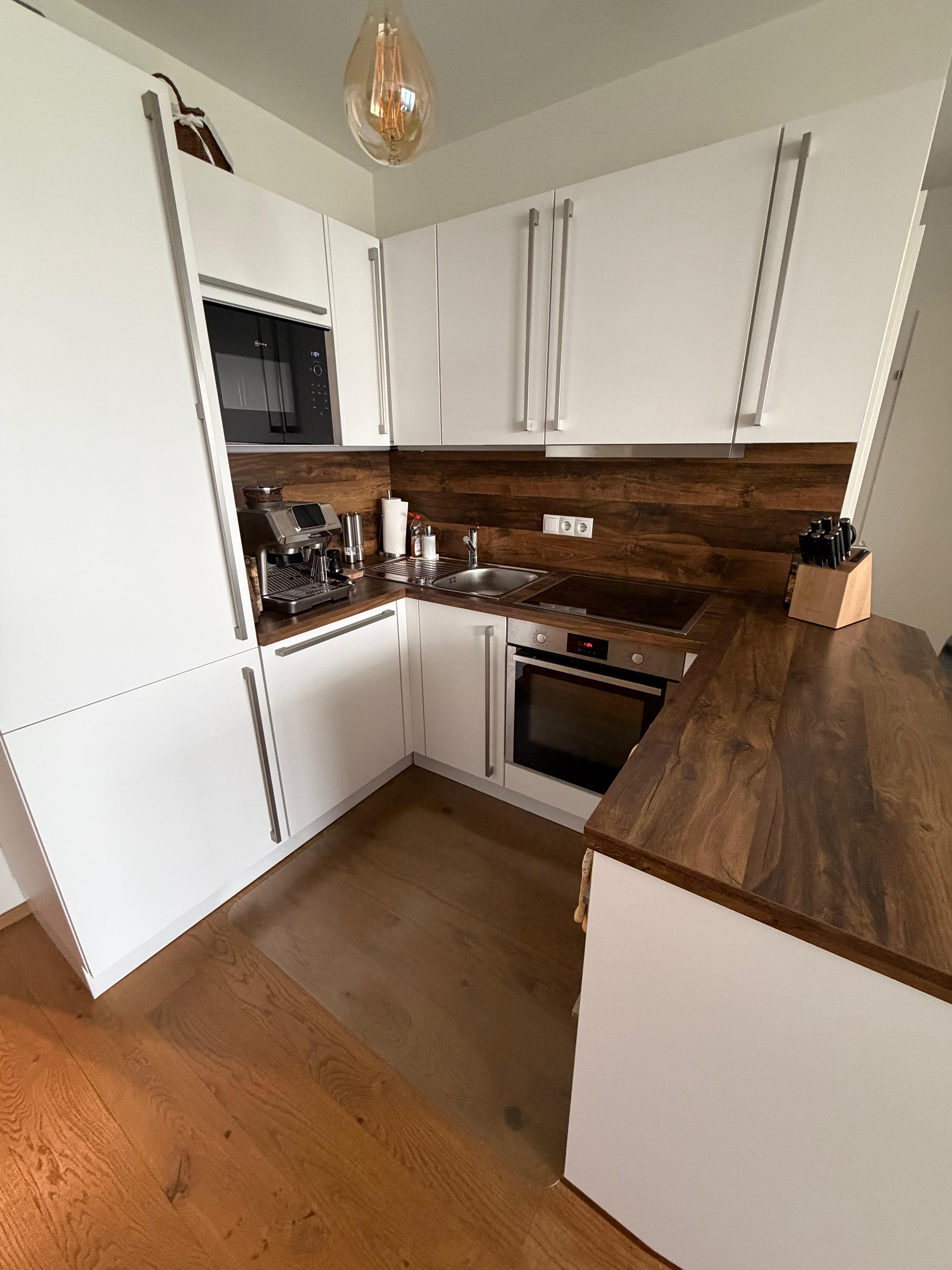 Edle Parkettböden, Hochwertige Lutz-Markenküche, Raffstores und Fliegengitter, Badezimmerausstattung von Villeroy & Boch, Fußbodenheizung in allen Räumen.