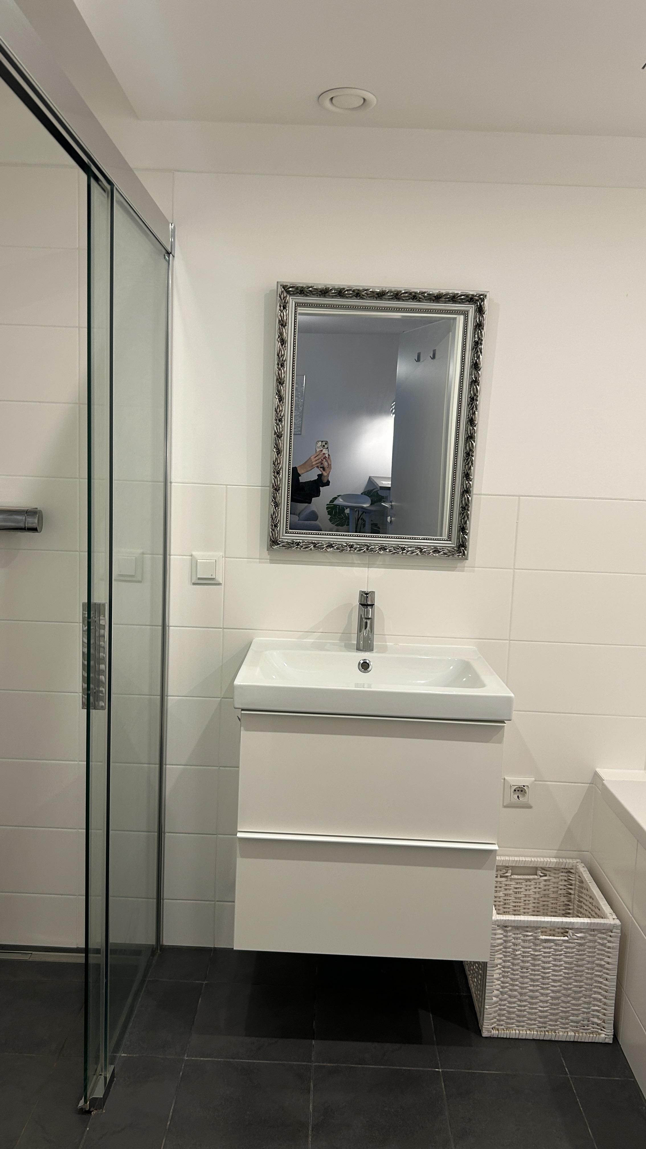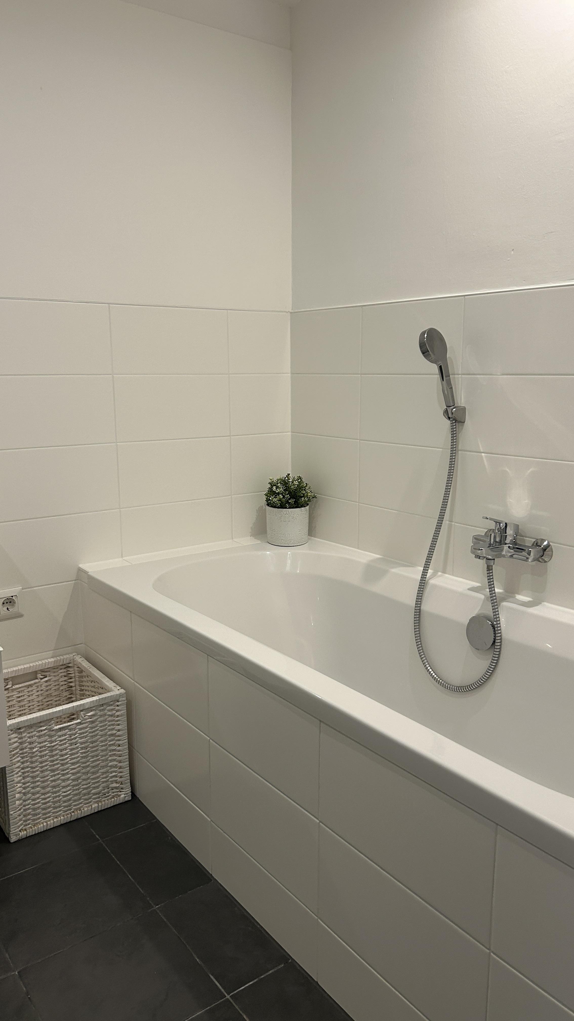 - Badezimmer mit Badewanne und barrierefreier Dusche