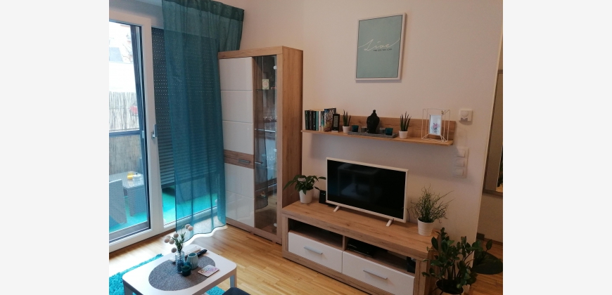 Sie besteht aus 1 Wohn-Esszimmer mit Kochnische samt L-förmigen Küchenblock, 1 Schlafzimmer, 1 Vorraum, 1 Badezimmer mit WC und 1 Terasse/Balkon mit ca. 7,3 m². Der Parkplatz befindet sich direkt vor dem Haus (im angeführten Mietpreis bereits inkludiert).