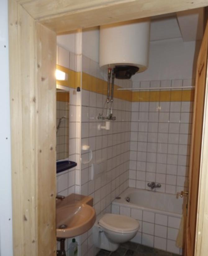 Wohn-Schlafraum, Vorraum mit Miniküche, extra begrünte Loggia im Haus. Fliesenbad (Wanne) mit WC.