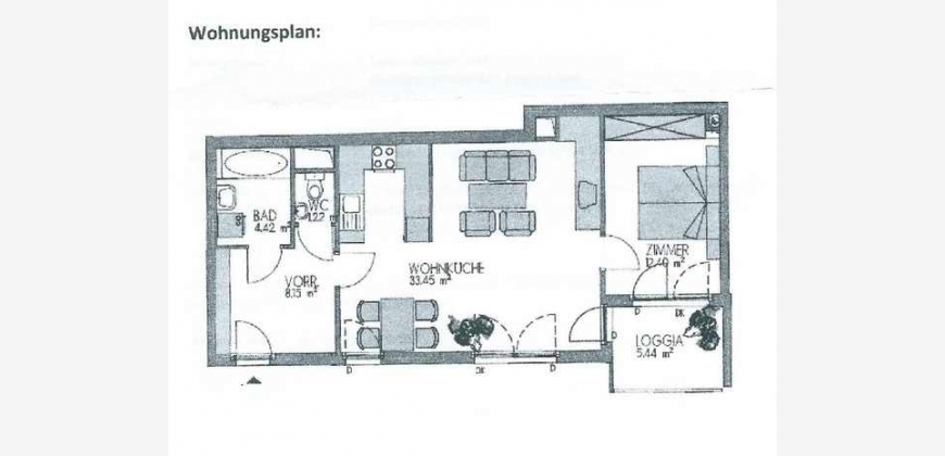 Unbefristete 2 Zimmer Wohnung (55 m²) mit Loggia (5,4 m²) in Wien 17. beim Parhamerplatz. Monatsmiete (inkl. Betriebskosten) –. Die Wohnung befindet sich im 2. Liftstock eines 2005 errichteten Wohnhauses, verfügt über ein Wohnzimmer mit offener Küche und Ausgang auf die Loggia, Schlafzimmer, Bad mit Wanne, separates WC und einen Vorraum. Ruhige Lage mit Blick auf Innenhof. Zum Bestand zählen weiters ein Kellerraum und eine Hauszentralheizung mit Warmwasseraufbereitung.