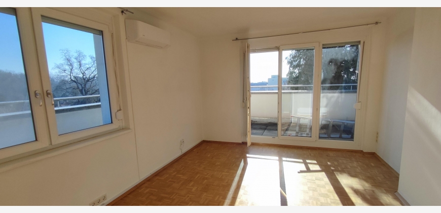 Sonnige Penthouswohnung Ecke Heinrichstraße/Hilmgasse mit zwei großen Zimmern, Vorraum, Küche und Bad.