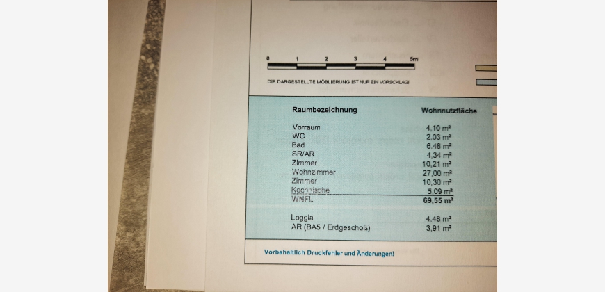 Die Wohnung ist 69,55qm gross, hat 2 grosse Schlafzimmern.